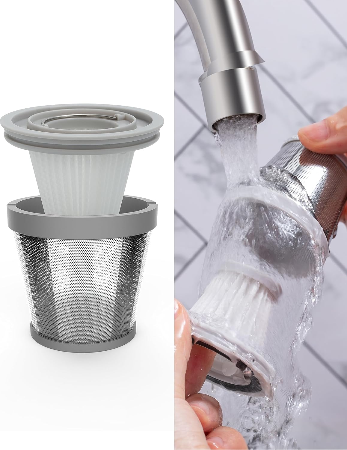 - WASHABLE DUAL-FILTRATION: The stainless steel filter and HEPA filter are washable and reusable.