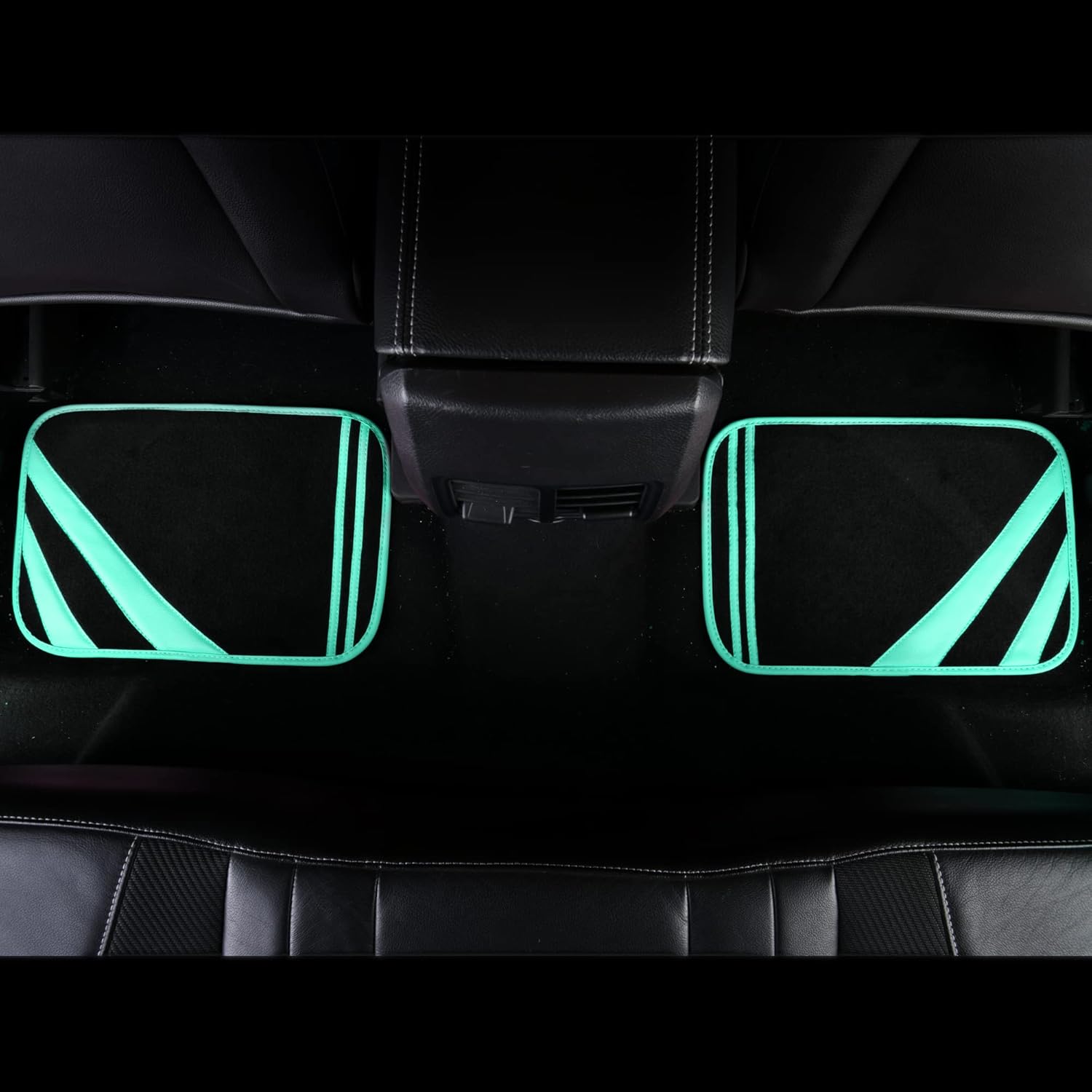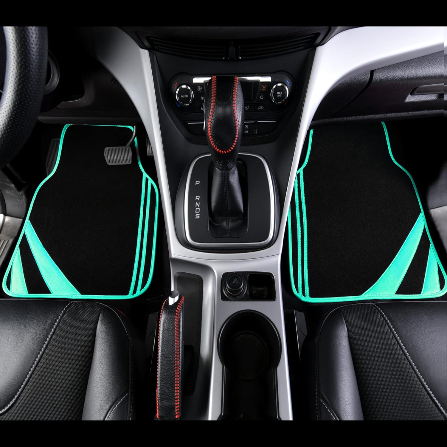 CAR PASS Mint Green Edge Leather Car Floor Mats, Universal Car Mats with Double Stitch Line and Anti-Slip Backing Design, for Cute Girly Women, Fit 95% Automotive,SUVs,Sedan,Vans (Black and Mint)