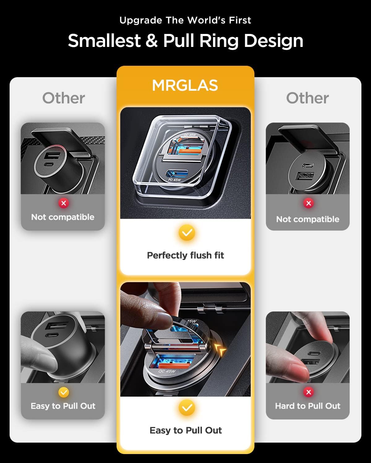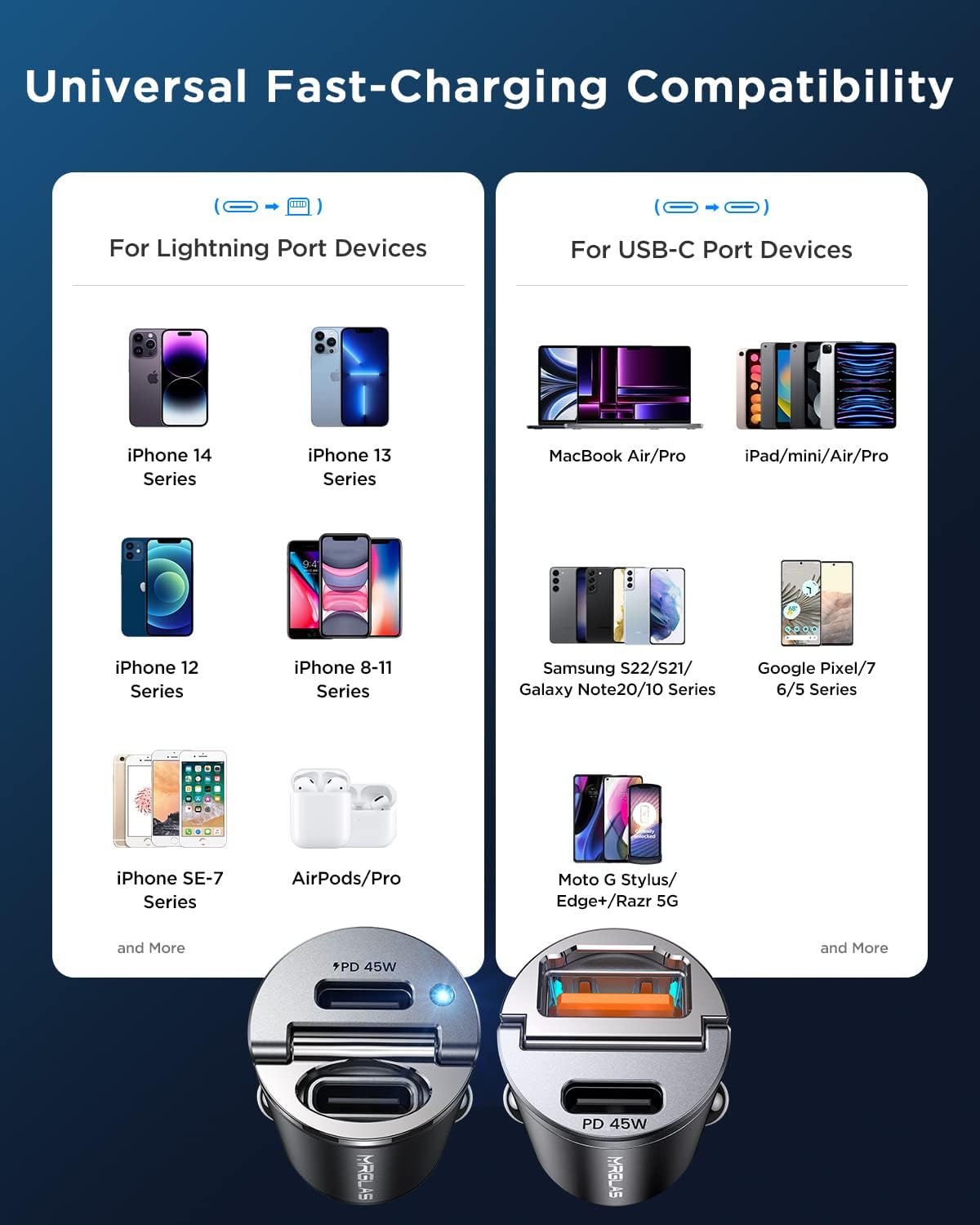 - Included Components : PD45W+QC45W USB C Car Charger x 1, Dual PD45W USB C Car Charger x 1