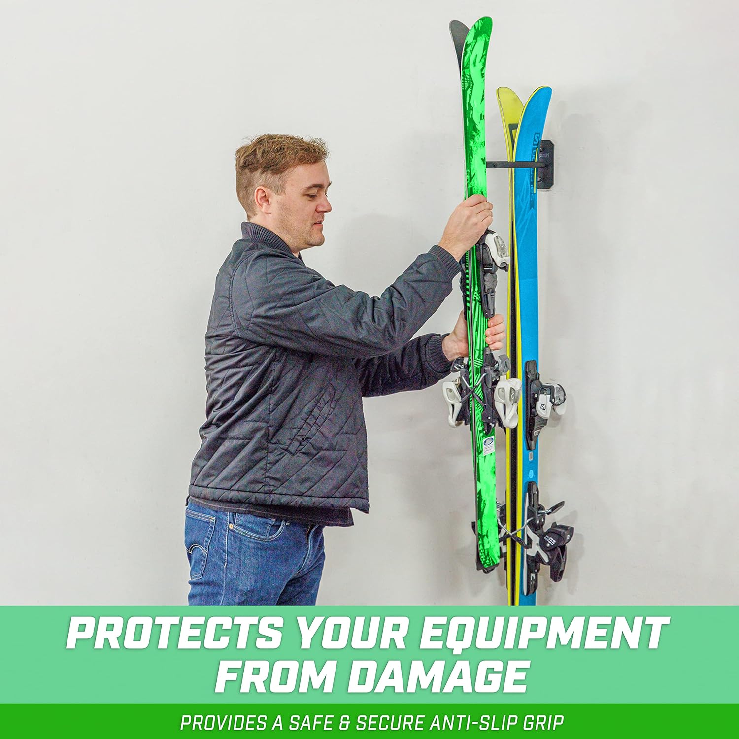 - SECURE ORGANIZATION: Snugly supports your skis or snowboard and prevents your equipment from falling down; Provides a tight grip while still allowing for easy retrieval whenever you are ready to hit the slopes