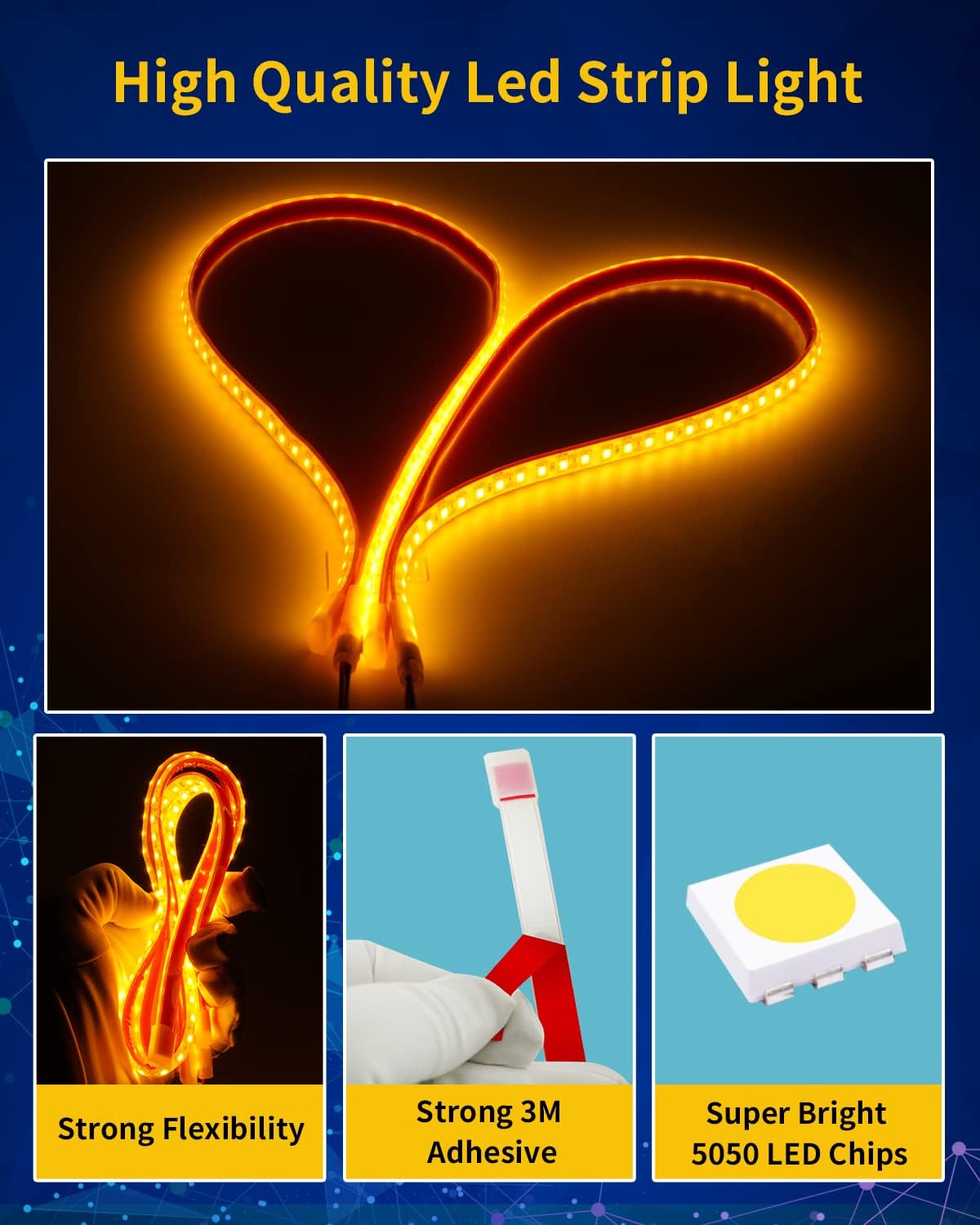 - ăSuper BrightăOur 12V auto led light strip is made of high quality ABS Material and 5050 led chips,high luminous efficacy, Long lifespan >50,000 hours,UL approved, it won't get too hot even it works long time.