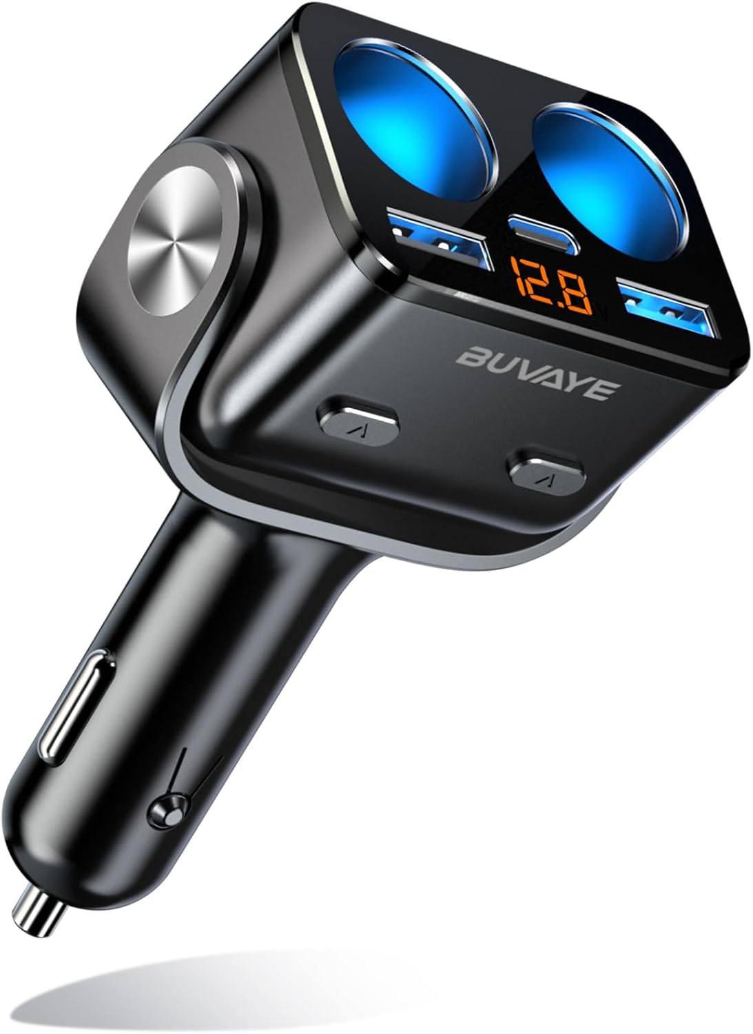 Car Cigarette Lighter Splitter, BUVAYE 12V/24V Dual Cigarette Lighter Adapters for Cars 2-Socket Car Charger Adapter for iPhone/iPad/GPS/Dash Cam/Laptop
