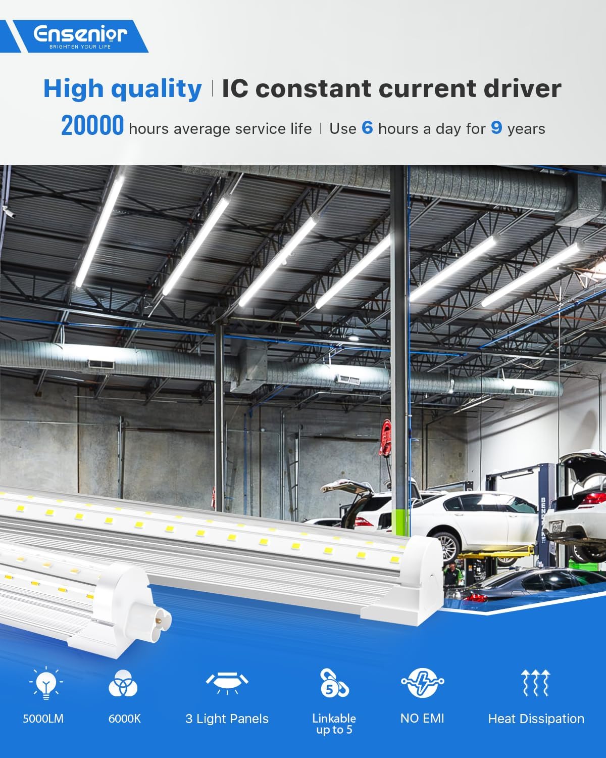 Ensenior 6 Pack 4 FT Led Shop Lights, 6000K Clear White, 5000LM Super Bright, 36W Equivalency 468W, Commercial Bay Lighting, U-Shaped Linkable Shop Lights Plug in for Garage, Workshop, FCC Certified