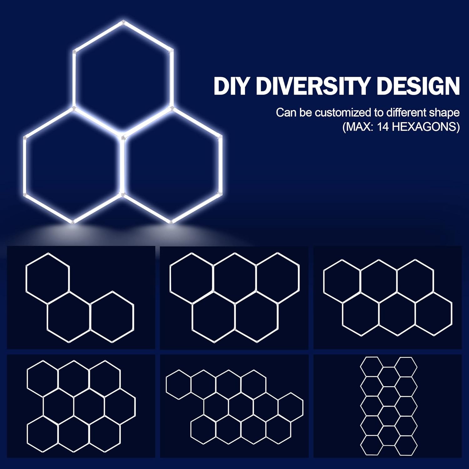 MODERN Hexagon LED Light,105W 12600LM 6500K, 3 Hexagonal LED Shop Light for Auto Shops, Malls & Work Areas