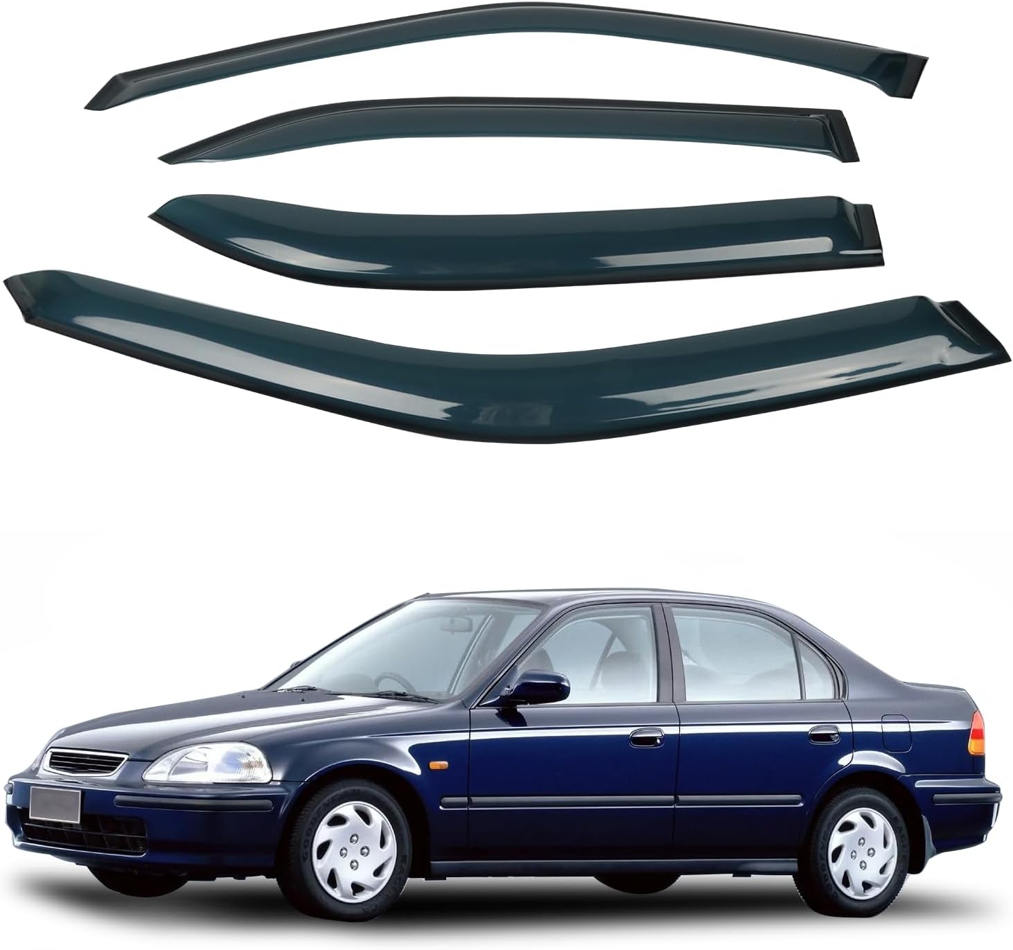 - FITMENT: 4pcs sun rain snow guard wind deflector vent shade side window visors compatible with 96 97 98 99 00 (96-00) Honda Civic 4d/4dr sedan model