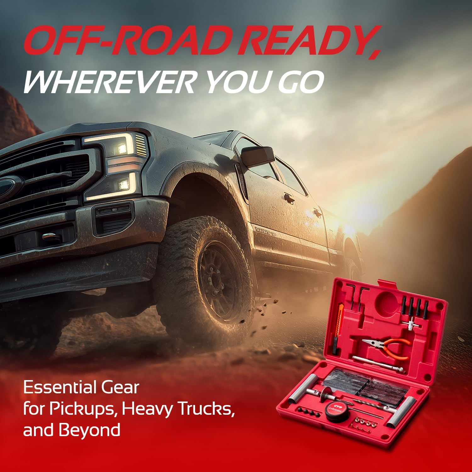 - [🧰Portable and Eye-Catching Design for On-the-Go Tire Fixes] Our universal tire fix kit comes in a vibrant red carrying case that's both sturdy and easily recognizable. Simply toss it into your car trunk, and you'll have it at your fingertips whenever you need to tackle a flat tire on the spot. Convenience has never looked this good!