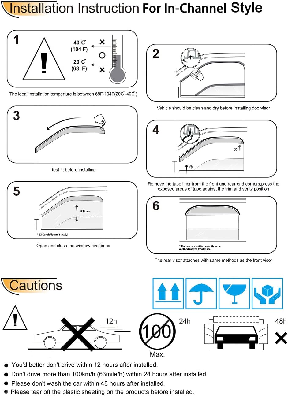 - ăMAKE TRAVEL ENJOYABLE AND SAFEă: You can drive in comfort with our rain guards, without worrying about the noisy wind, chilly snow, annoying rain sprays,blazing sunshine. It help improve ventilation to reduce window fogging keep sight clearly make rides safe.