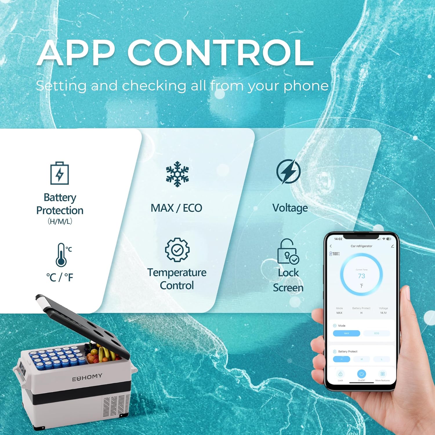 - Dual Storage & APP Control; The 12v refrigerator is designed with two zones to effectively reduce odor. The 12v cooler features a removable internal basket for easy storage and access. With Bluetooth mode and app control, you can conveniently manage the car cooler from a distance to facilitate your journey
