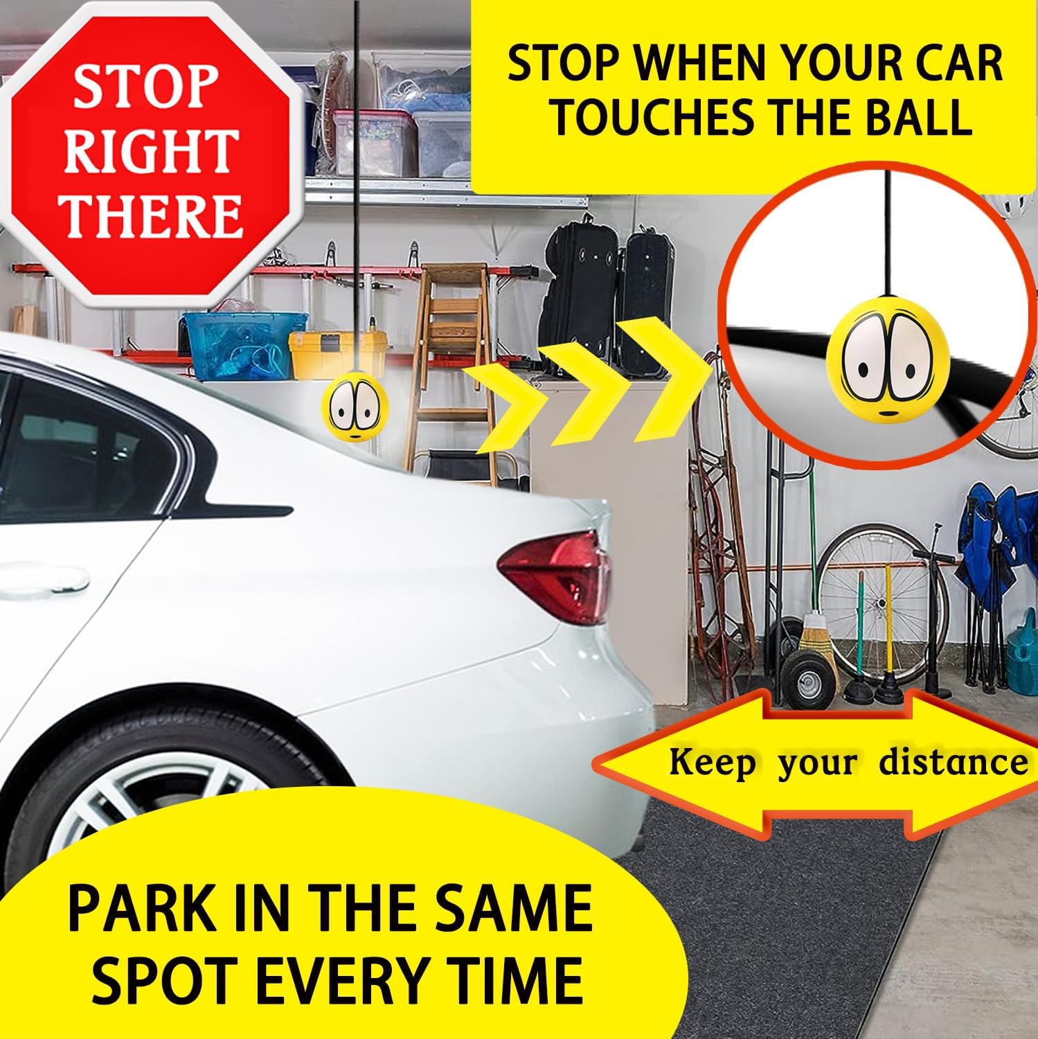 - PARKING WILL BE FUN: The well designed funny expression ball serve as a fun yet effective garage car stop indicator. Simply stop your vehicle when the ball contacts your windshield and enjoy an entertaining parking solution.