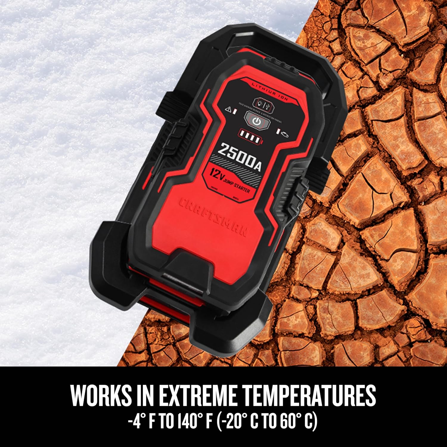 CRAFTSMAN Lithium Jump Starter and Portable Power Pack, CMXCESM262, 3-in-1, 2.4 Amp USB Port, LED Light, 2500 Amps, 12 Volt, for Motorcycle, Car, SUV, Truck, and Marine Batteries