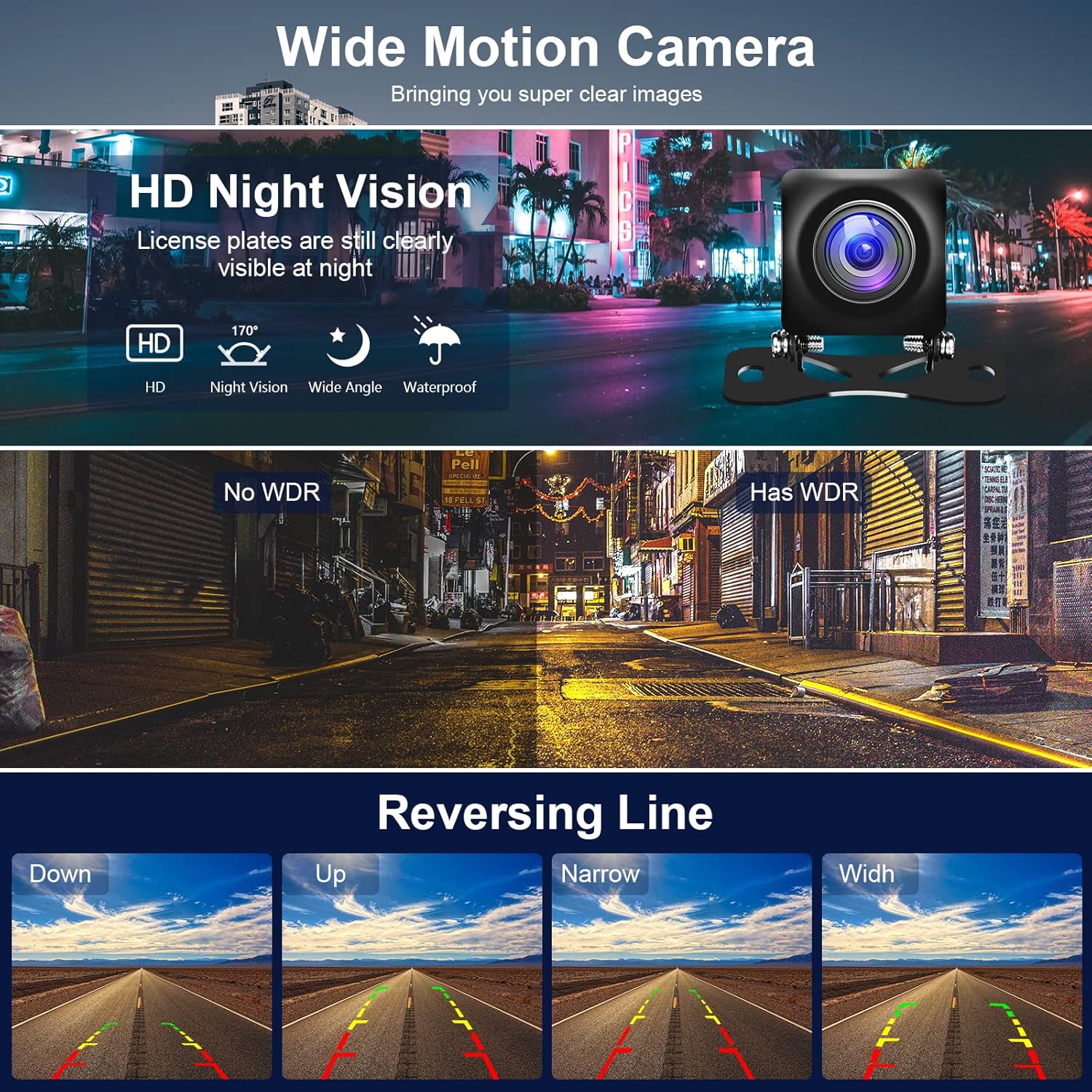 - ✔️[Voice Control and Touch Control] While driving at high speeds, voice commands control the dashboard camera without distraction. Or simply touch the screen to adjust the reverse guidance lines to ensure safe reversing. At the same time, a 64G memory card is provided, and it supports up to 128G recording memory cards with seamless loop recording function.