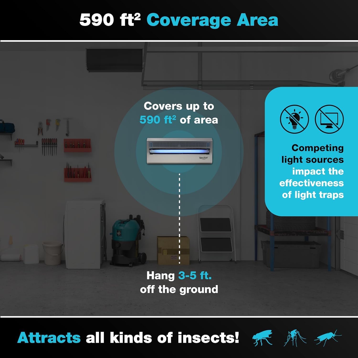 - USE IN MANY LOCATIONS: Place the indoor fly traps 6 feet off the ground in your kitchen, dining area, food hall, food preparation area, barn, and other locations where flies and other flying insects might thrive. If possible, place the fly killer indoor away from competing light sources and not facing open doors or windows. Use the Vector plug in bug catcher indoor as an attractant in kitchens, dining areas or anywhere that needs a discrete alternative to a messy plug in bug zapper.