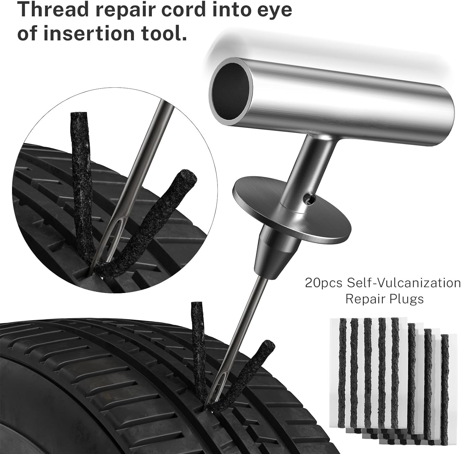 - Durable and Safe: The tire puncture repair set has great adhesion, flexibility, shock absorption, and is not easy to age, providing a long shelf life. It can withstand the toughest repairing and achieve the best tire air tightness.
