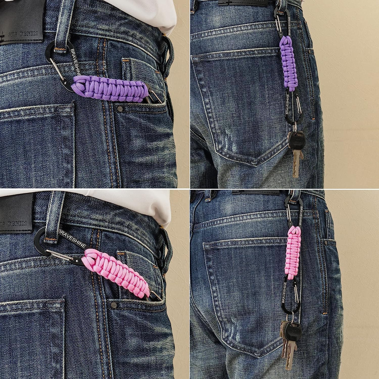 BRAVESHINE Paracord Keychain Carabiner Clip, D Ring Lanyard Hanger Stroller Hook for Water Bottle, Key, Backpacks, Men, Women