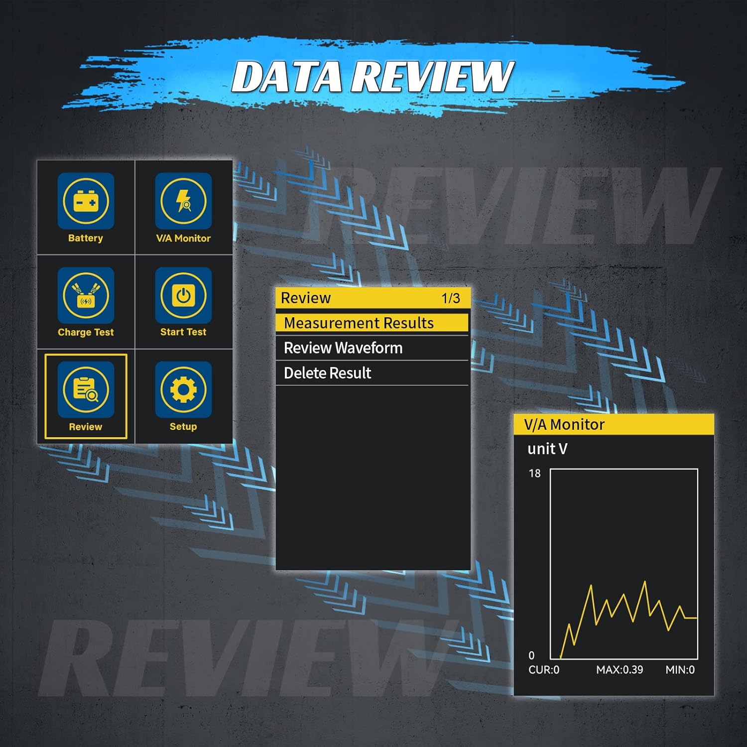 - 【12V Battery Tester】Supporting tests for 12V & 24V Lead-acid batteries, including regular flooded, AGM flat plate, AGM spiral, GEL and EFB batteries, with 20-2000 CCA test range. Support CCA, JIS, GB, SAE, MCA, CA, DIN, IEC, EN, BCI input standards.