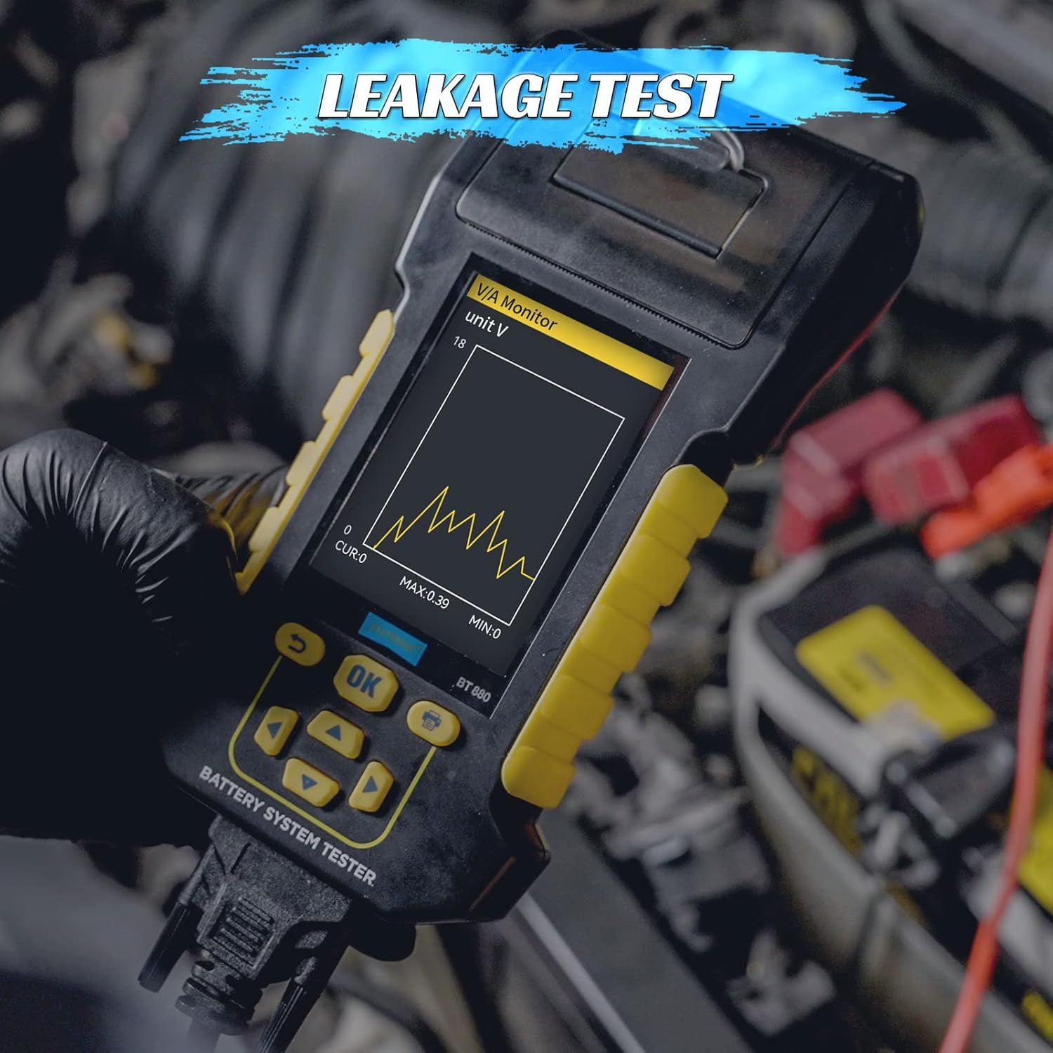 - 【Professional Testing Tech】AUTOOL BT880 Battery Load Tester is a more advanced battery load test tool for 12V/24V starting and charging systems, which can quickly test start voltage, current, CCA value, resistance, battery life, battery temperature and accurately display battery condition. Its functions include battery test, leakage test, charging test, load test and start test.