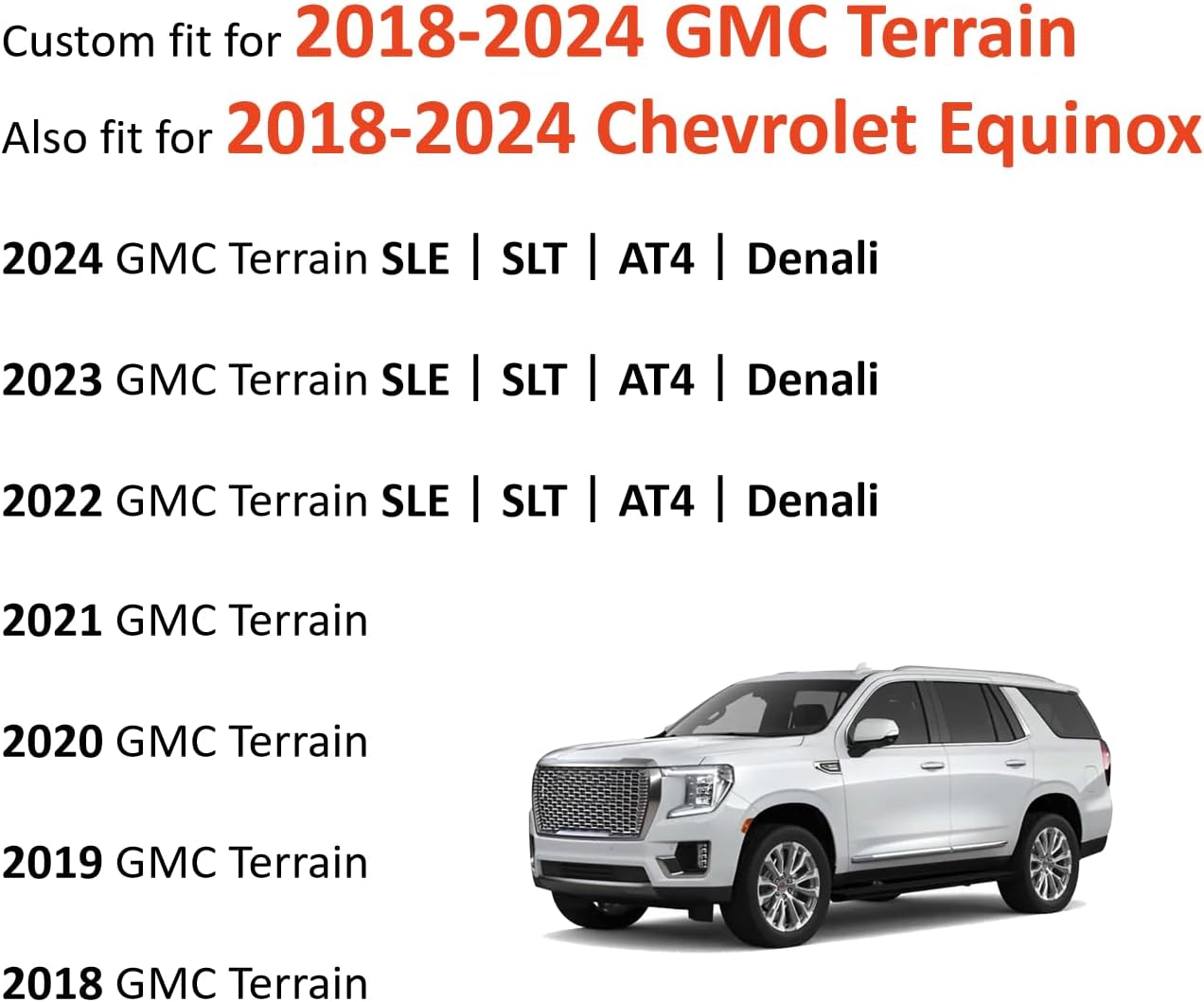 - Custom Fit: For GMC Terrain 2024 perfect. Binmotor car floor mats are accurately scanned by professional 3D laser scanner to make the auto floor carpets and the original car data accurately match. What's more, details such as throttle and brake were noted during the design process, which will not affect you when you drive.