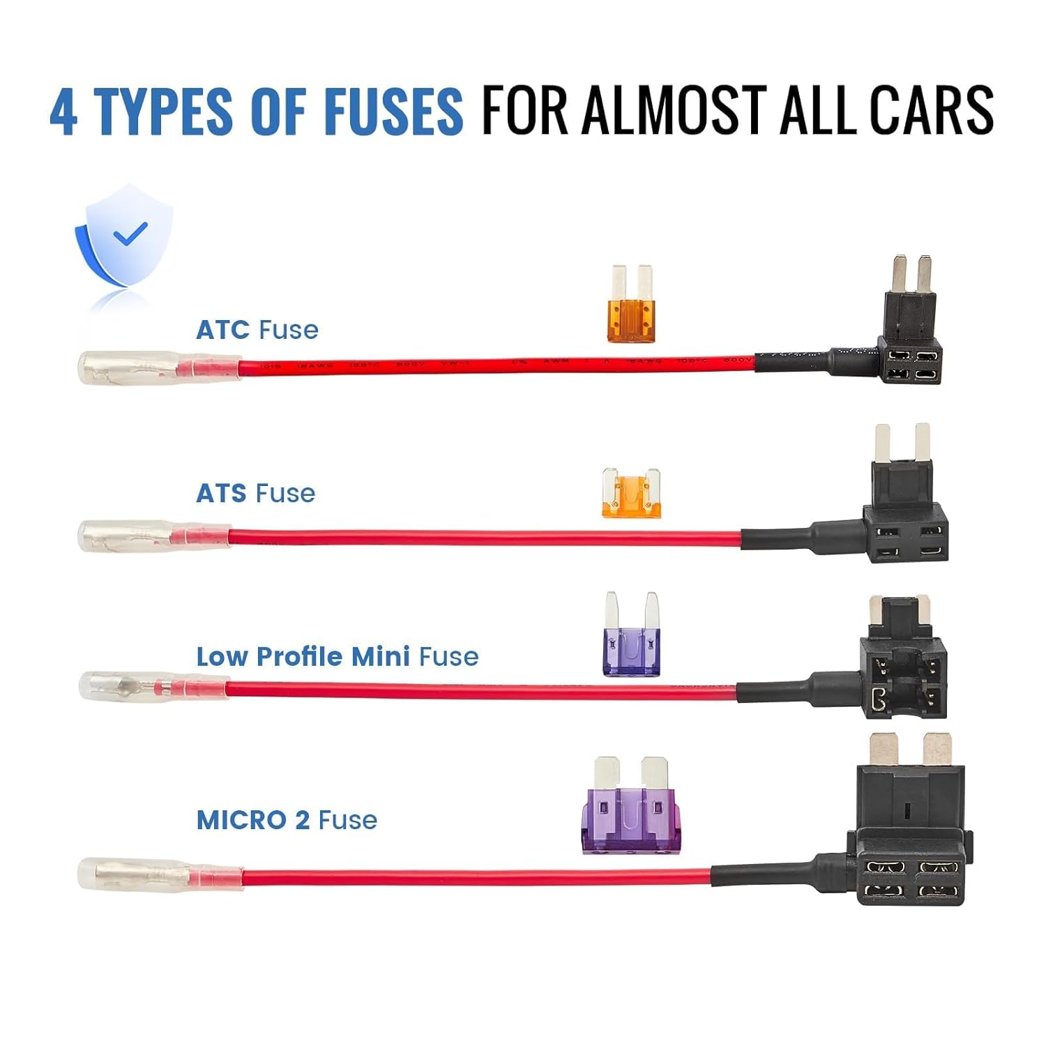 - ăMultiple Fuse SizeăInclude 4 common sizes Tap-A-Fuse: ATC, ATS, Mini, and Micro 2, suitable for most cars. Come with 2x3a and 2x5a fuse for the Tap-A-Fuse. Easily connects multiple types of radar detectors, protect your vehicle from short circuit.