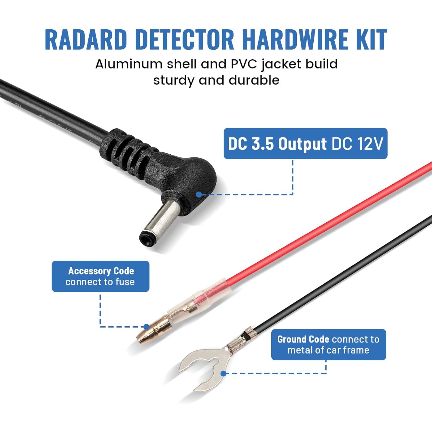 - ăInstallation NoteăDC "3.5" radar detector power charger direct wiring kit could be hard wired to your car 12V plus and minus supply line Including safety fuse to protect the car and the device. Comes with a circuit test pencil, helps determine the fuse slot before installing.