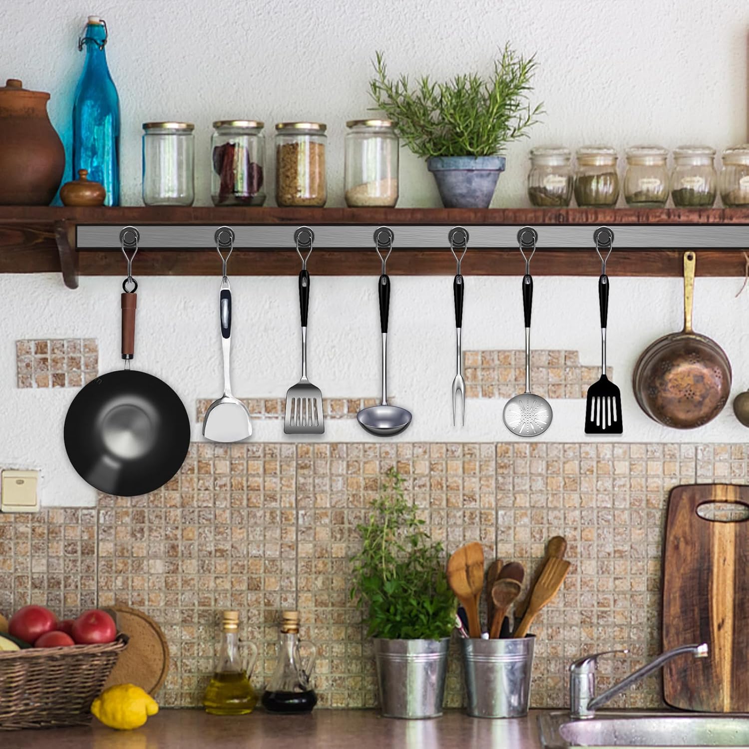 - MULTI PURPOSE: The swivel hooks can be used to hang kitchenware, towels, umbrellas, keys and other small objects you want, great helper for families, kitchens and bathrooms. Help you save space and keep your room tidy.