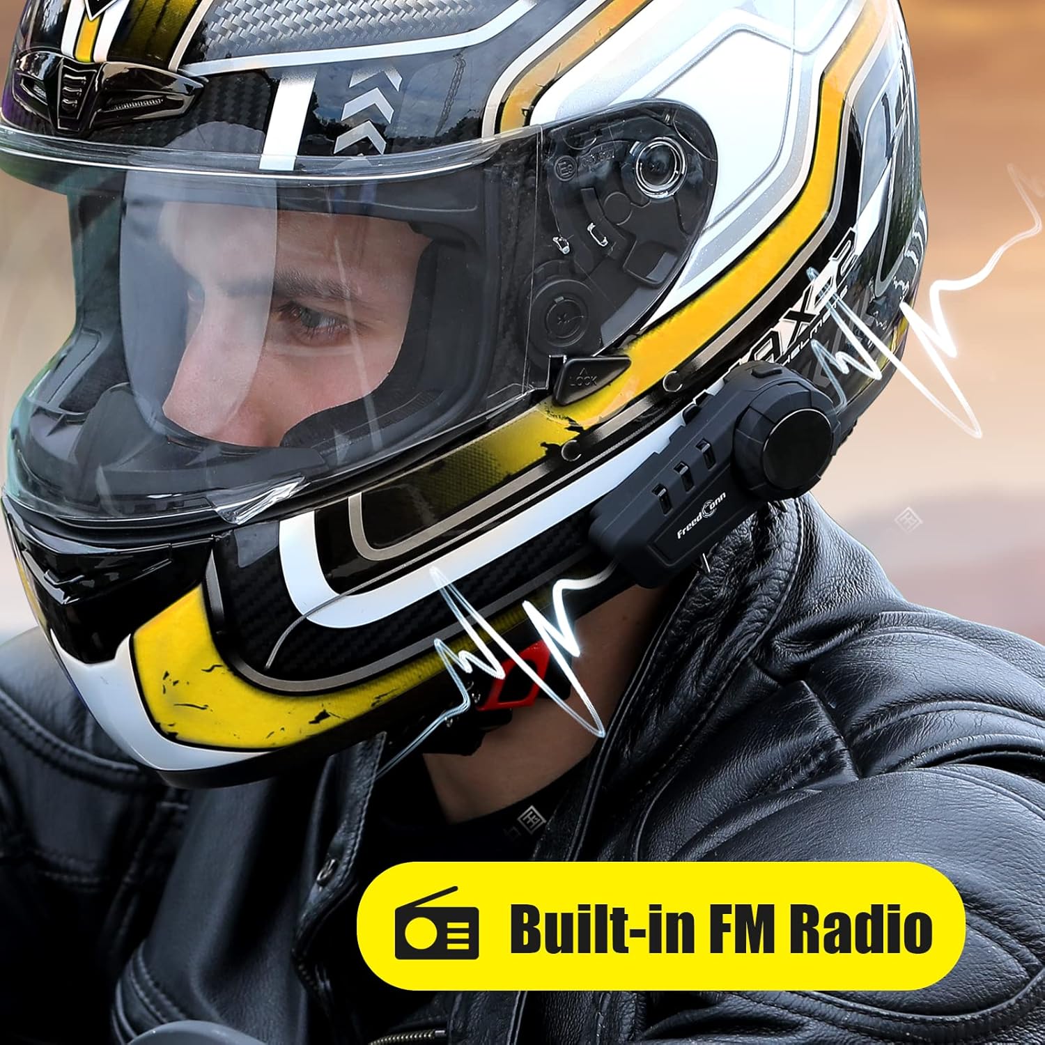 FreedConn KY PRO Motorcycle Helmet Bluetooth Headset, Motorcycle Communication Systems with CVC Noise Cancellation, Stereo Music, 6 Riders 0.75mi/1200m intercom, Dual Device Connection, IP65, 2 Pack