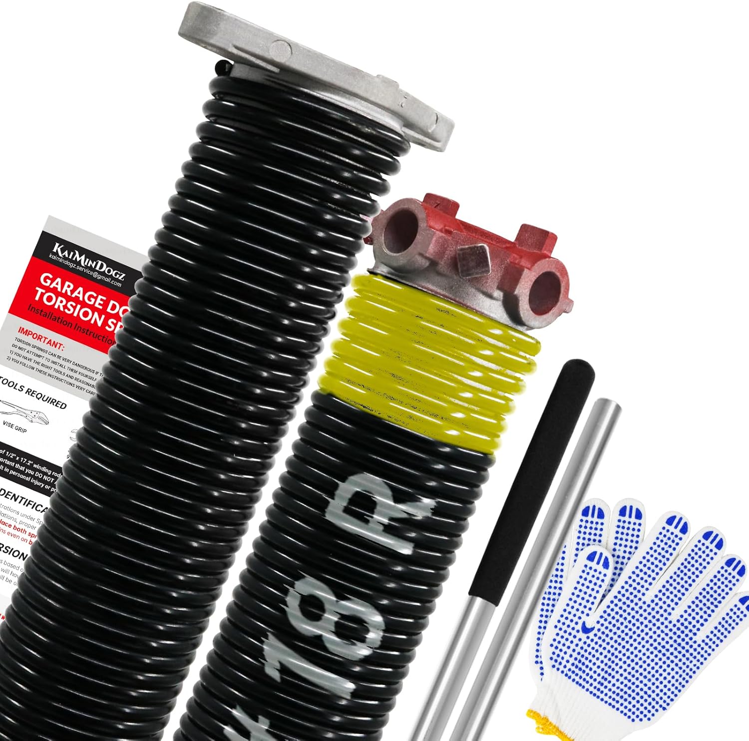 - PACKING INCLUDED : A pair of Garage Door Torsion Spring, A pair of 17.2’’ Non-Slip Winding Bars and Gloves, and Installation Instructions are included in the package, so you can start installing immediately after receiving the product.