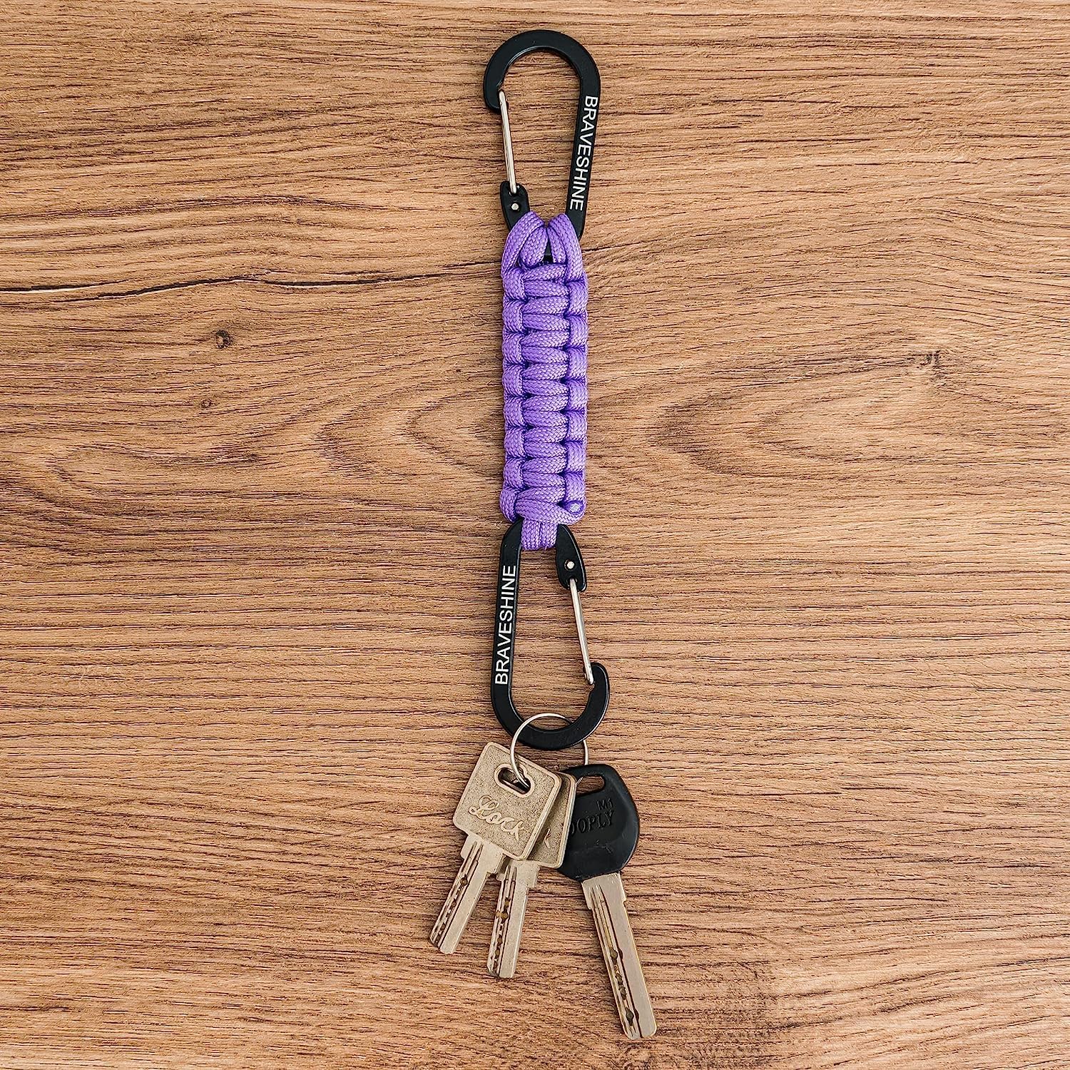 BRAVESHINE Paracord Keychain Carabiner Clip, D Ring Lanyard Hanger Stroller Hook for Water Bottle, Key, Backpacks, Men, Women