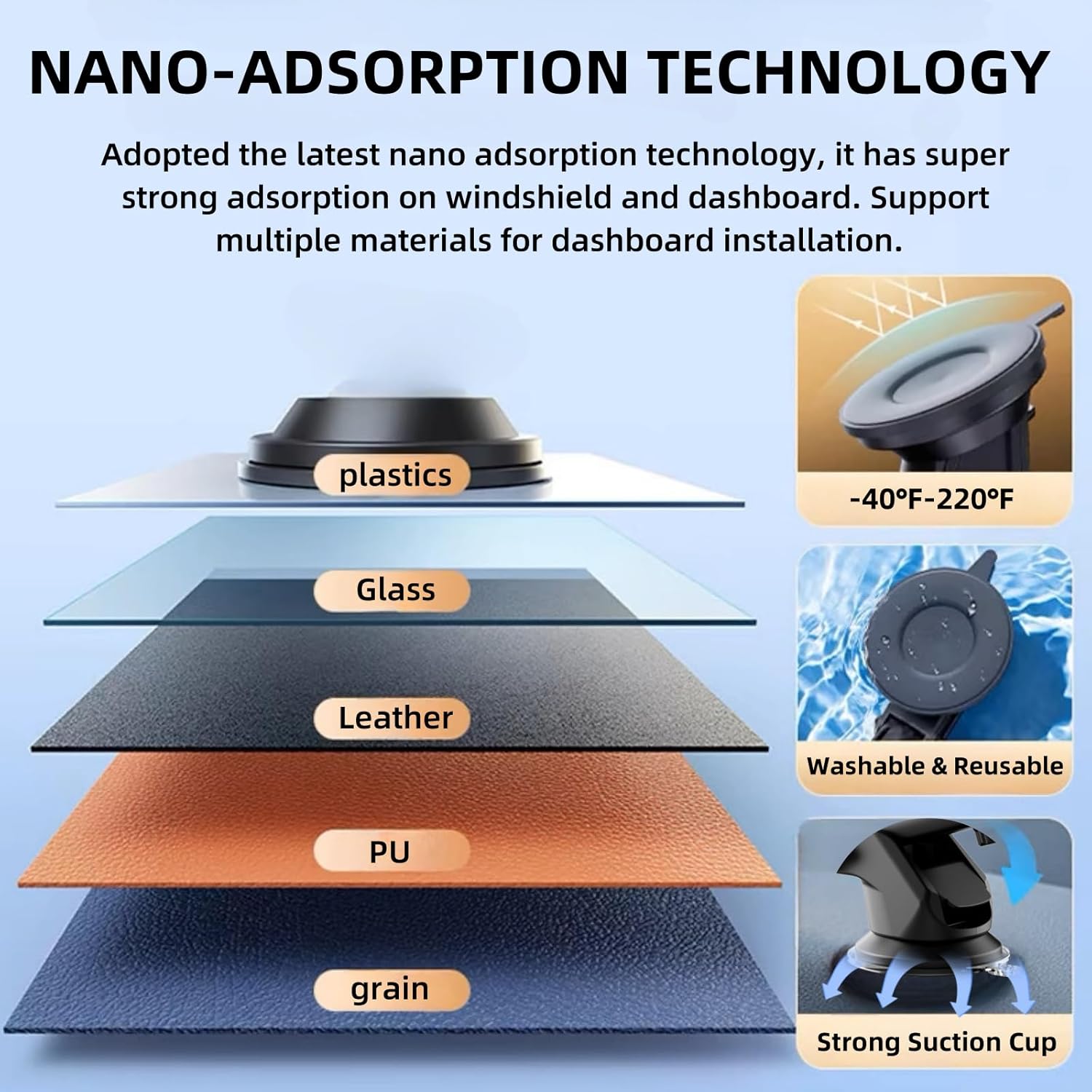 - Performance and Adhesion: Industrial-strength suction cup with sticky gel and sticky disk pad, the car player can be fixed firmly on the central console or windshield. Keep the cell phone holder stably on your car while driving, even on the bumpiest roads
