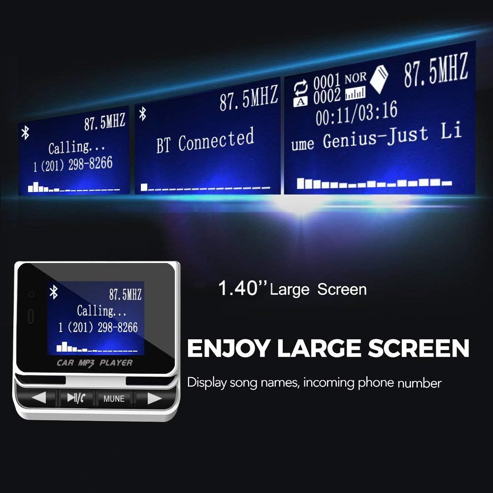 - [ Large Screen & Wide Compatibility ]: This car FM transmitter Bluetooth design with remote control, 1.4 inches Large Screen display voltage level in car battery, also it is able to show the incoming call number, volume, FM frequency and song name while playing music from Micro SD card or U-disk, and this radio adapter works with compatible devices, compatible with iPhone XS/ XS Max/ X, iPhone 8/ 8 plus/7/ 7 plus, Samsung, Huawei, Xiaomi, LG, Blackberry, Sony, Tablet, iPod and iPad etc