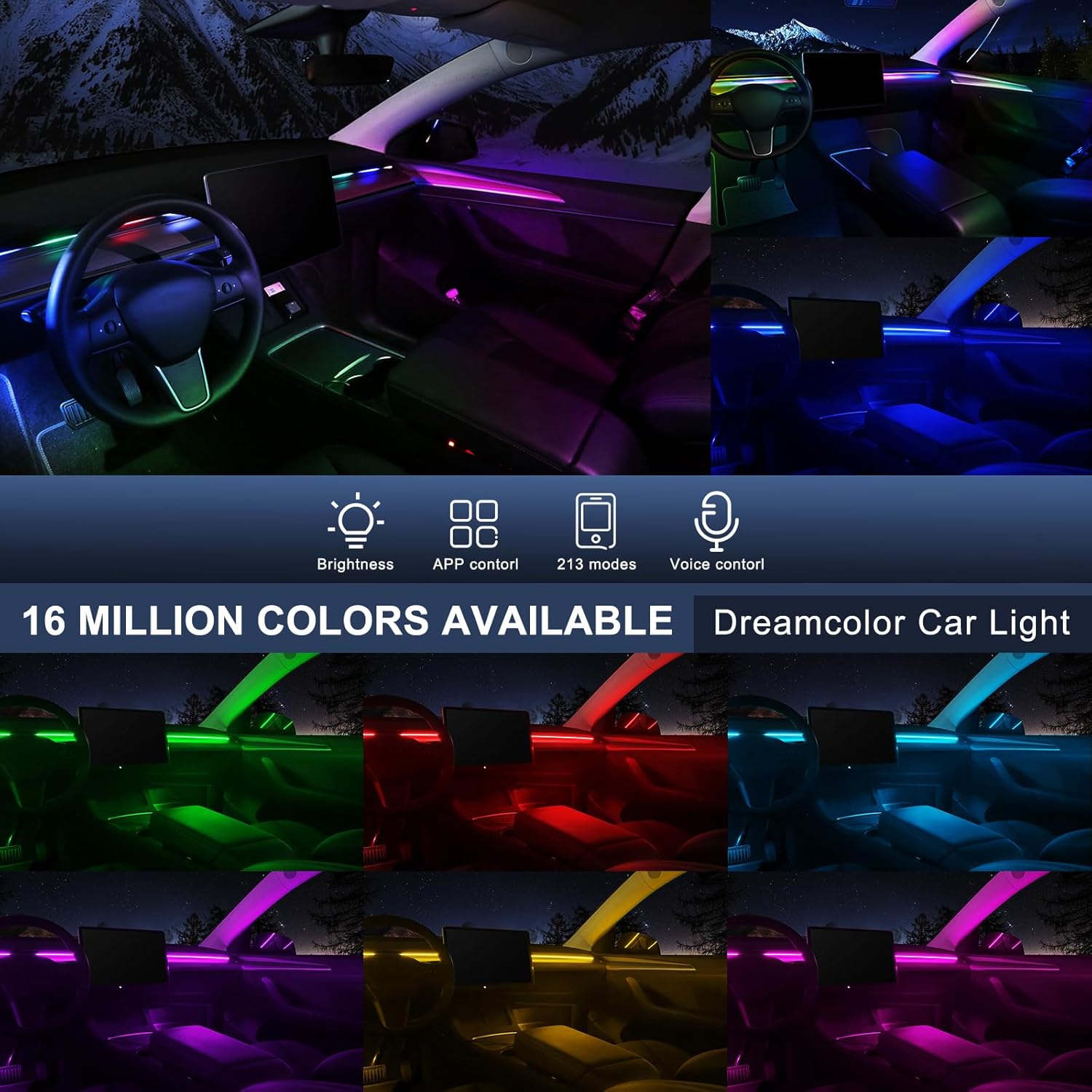 Dreamcolor Acrylic Interior Car LED Strip Light with USB Hub, 55.1 inches Fiber Optic Ambient Lighting Kits, RGB+IC Colors Sound Active Function Neon LED Strip