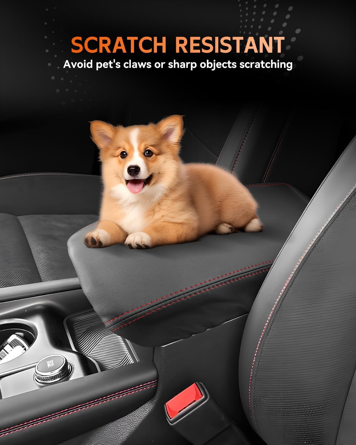 - [Excellent Scratch Resistance] The car center console mat is made of high quality PU microfiber leather, thick enough to keep out pet paws, dust and sticky fingers. The surface is waterproof, wear-resistant and durable, breathable, light weight and easy to wipe clean of dirt.