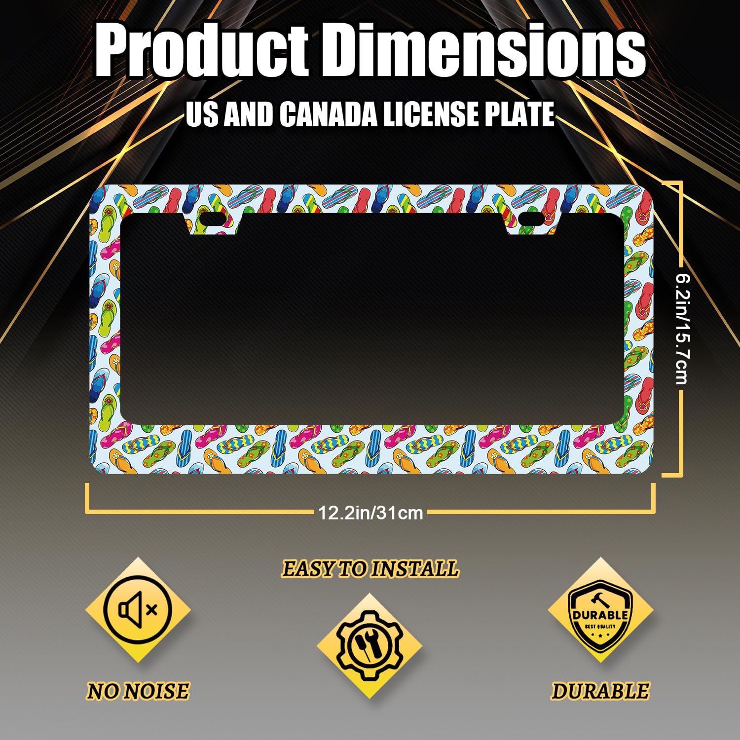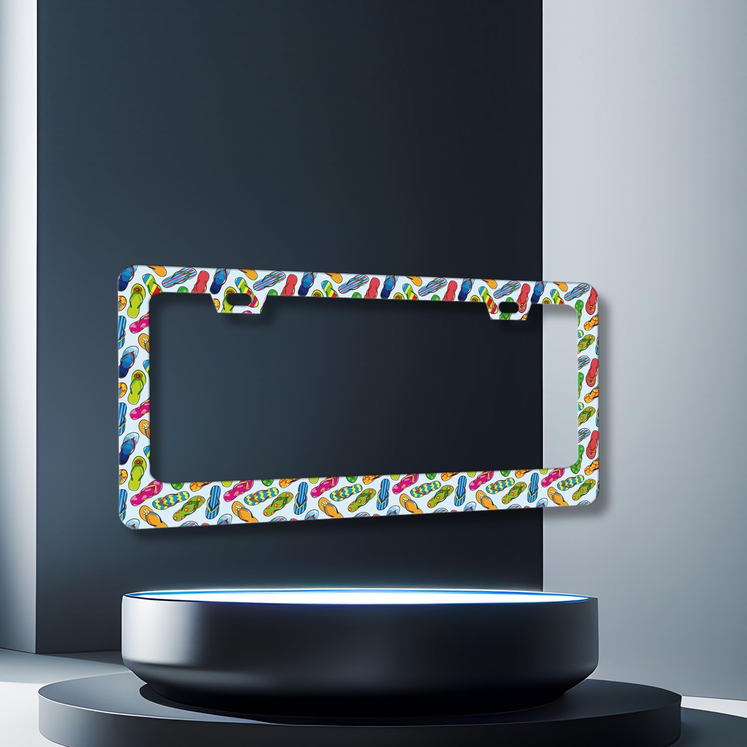 Flip Flops License Plate Frame Beach License Plate Holder Stainless Steel Colorful License Plate Car Accessory Funny License Plate Decoration Men Women Size 12.2" x 6.2" with Screws