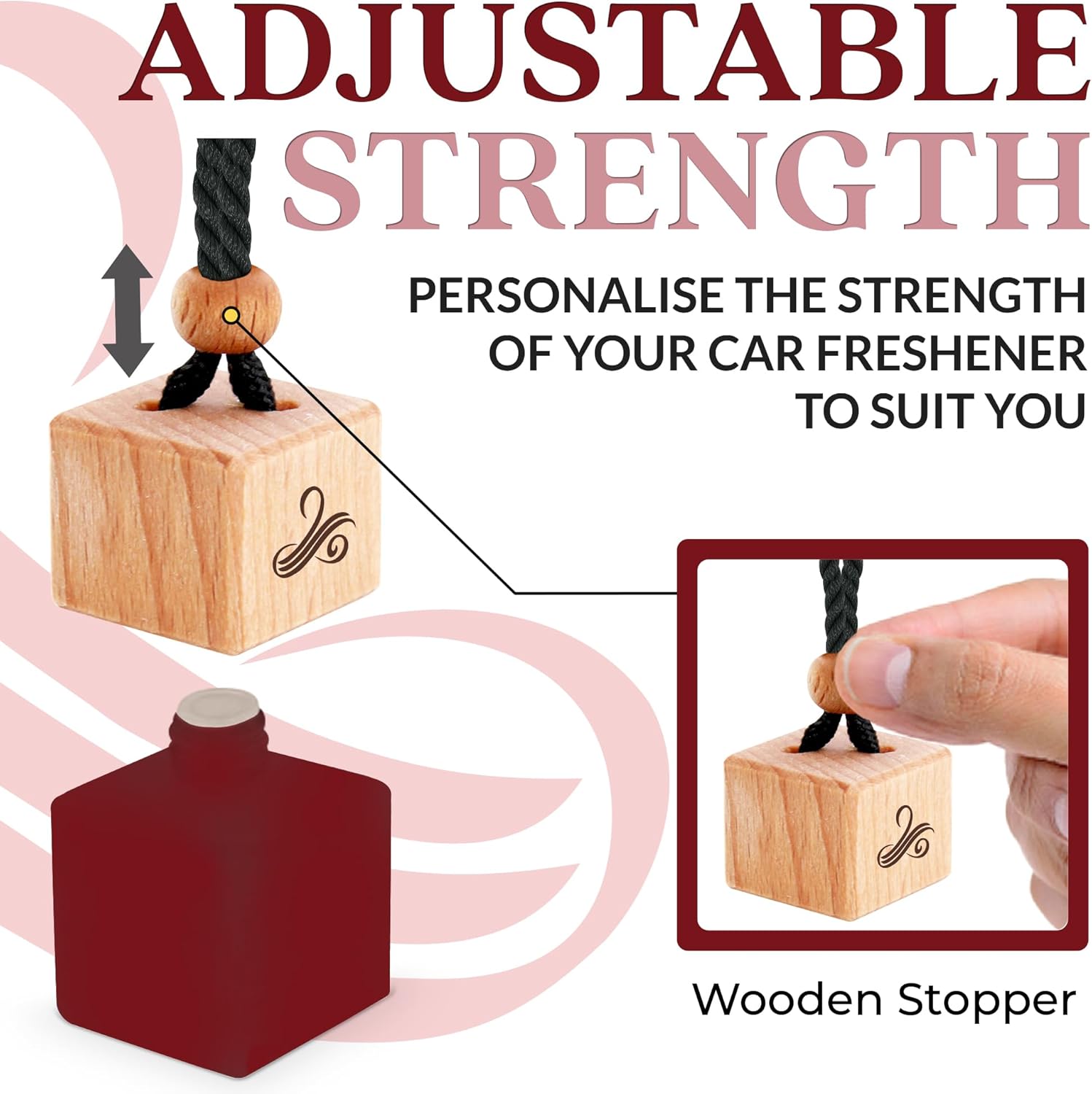 - ADJUST THE STRENGTH TO SUIT YOU - Personalise your car smell air freshener to suit your taste. Simply move the wooden stopper up and down the diffuser chords to set the strength to your liking.