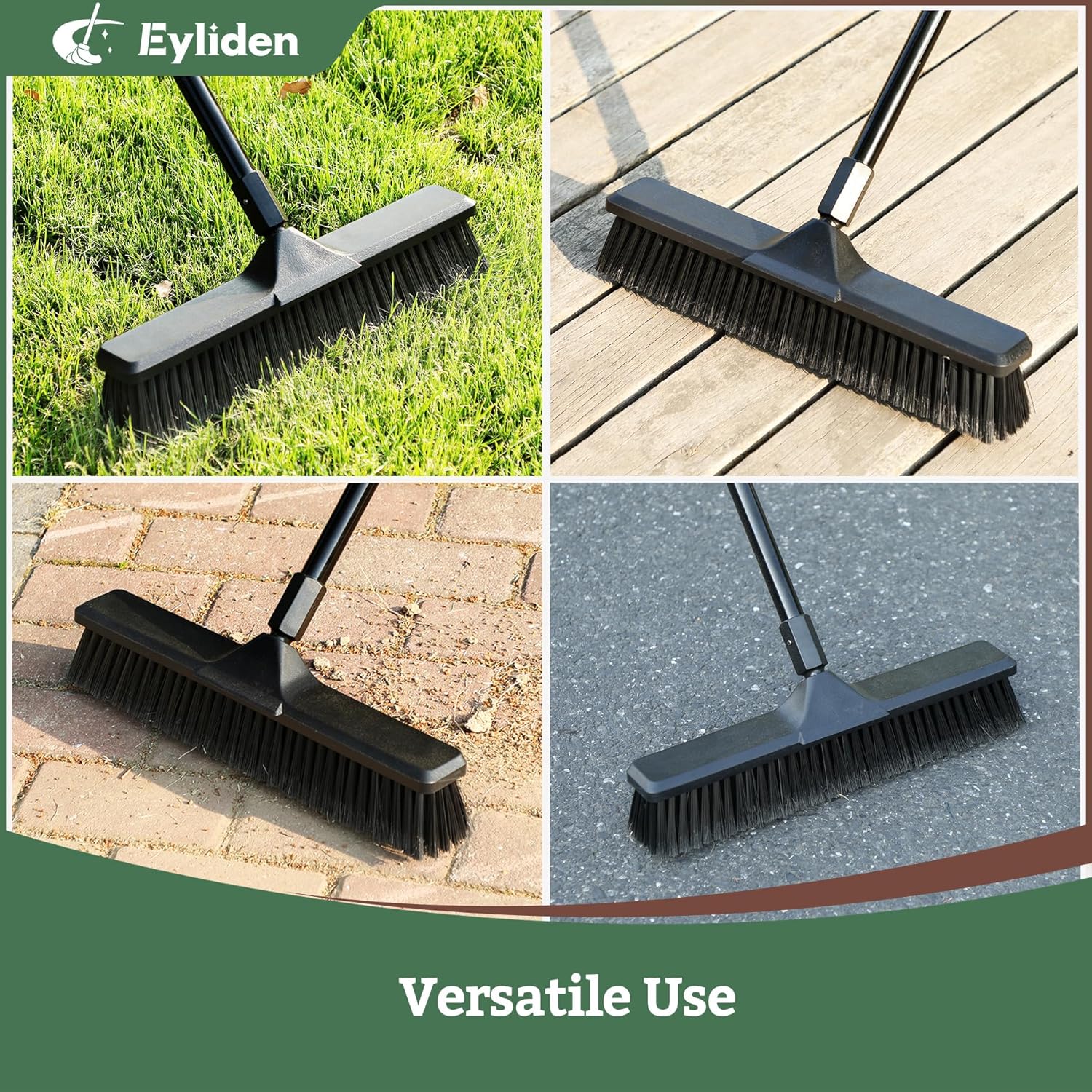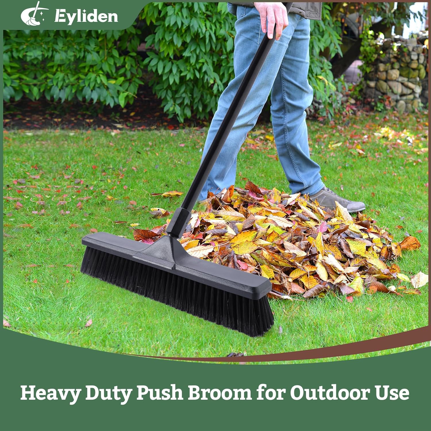 - ăVersatile Use Heavy Duty Push BroomăThe width of the sweeper broom head is about 18 inch, so Eyliden broom can sweep a large area at a time. Our push broom/brush for outdoor All Types of Indoor, Outdoor, Garage, Shop, Sidewalk, Patio, Deck, Backyard, Garden, Lawn, Concrete, And Other Multi Surface To Sweep Away Debris, Like Stones, Leaves, Grass, Soil, Snow, Gravel And All Kind of Floor Cleaning