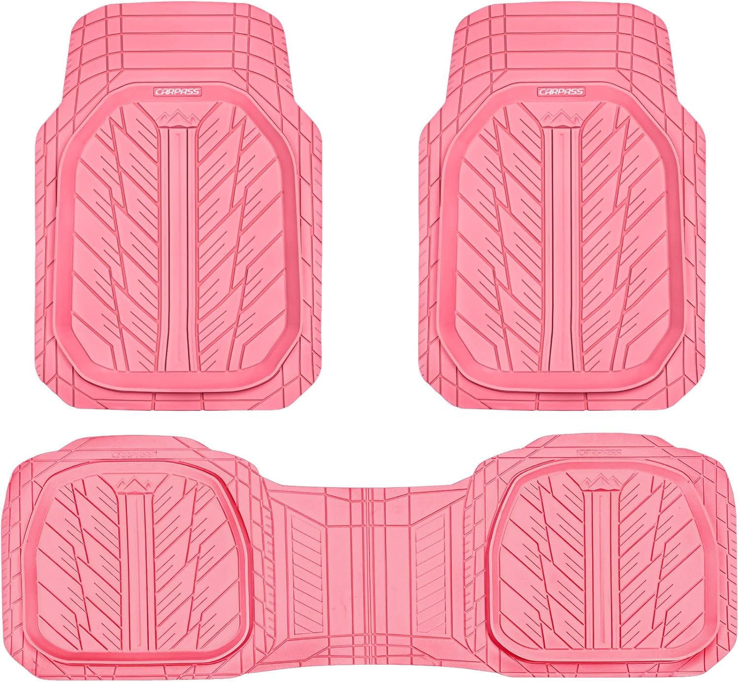 CAR PASS DeepDish Pink Floor Mats for Cars Full Set,Heavy Duty Rubber Car Mats 3-Piece,Universal Waterproof Trim-to Fit Automotive Floor Mats for Truck Van SUV, Durable All-Weather Car Mats (Pink)