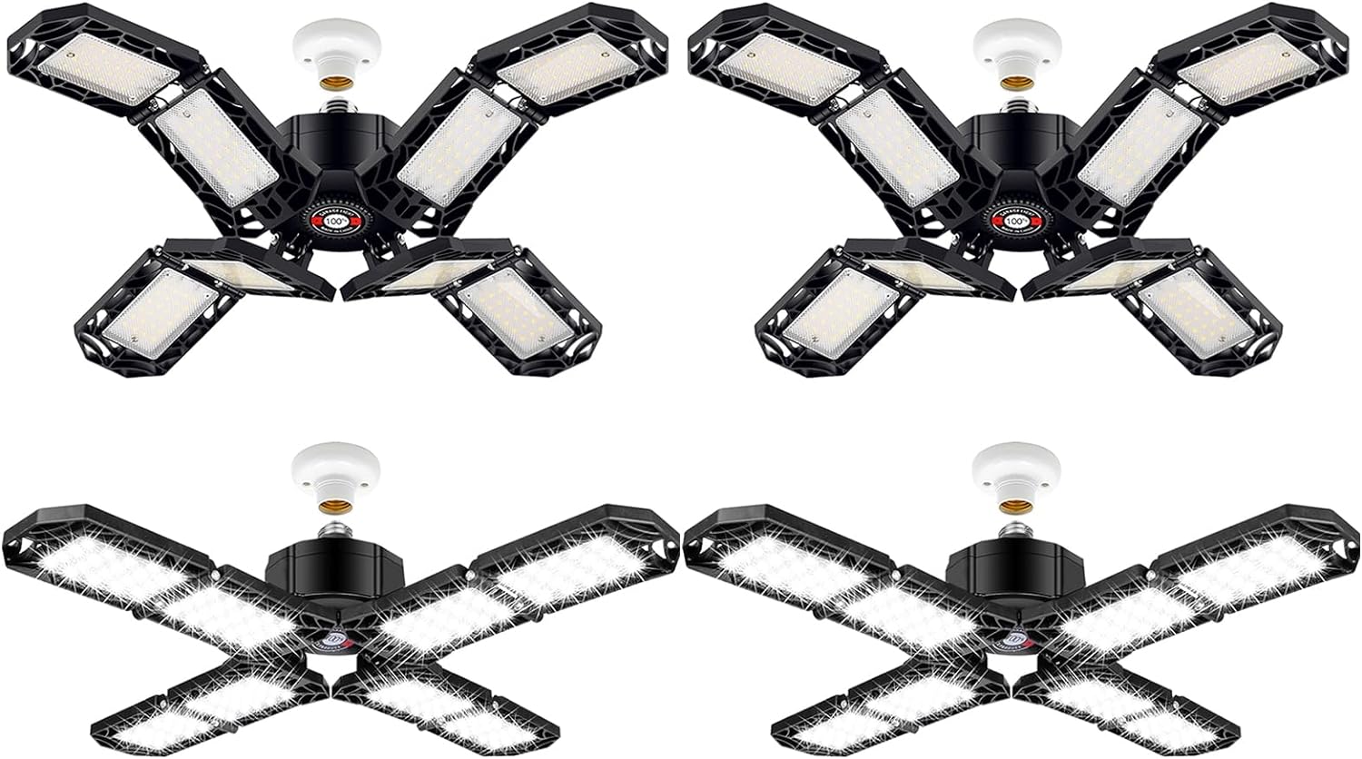 4 Pack LED Garage Light, Super Bright Screw in E26/E27 Ceiling Shop Work Lamp, 200W 20000 Lumen Deformable Basement Bulb Fixture with 8 Adjustable Panels