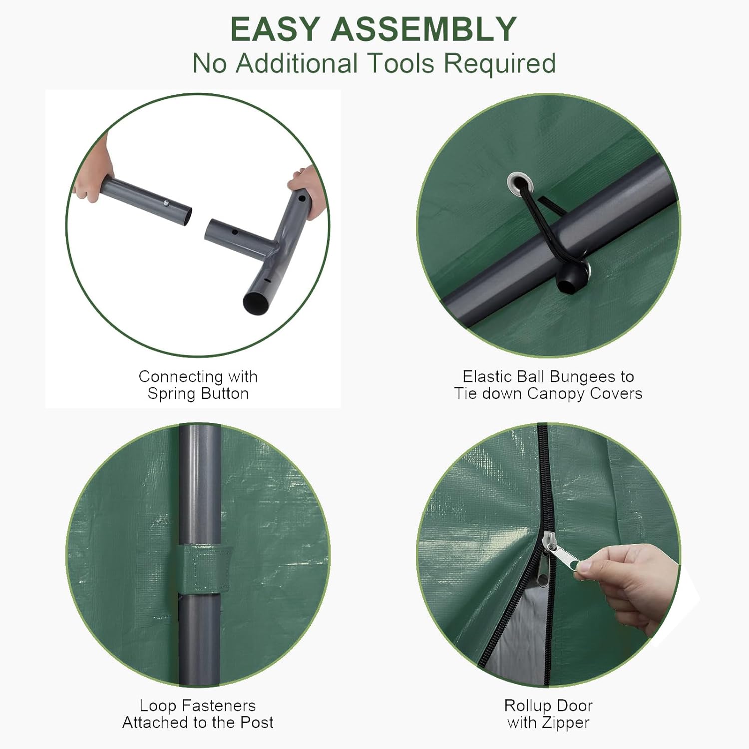 - 【Fast and Effortless to Assemble Your Portable Garage】:No additional tools are needed. Each component is marked with a number, and it's easy to follow the included instructions for step-by-step installation, and typically 2-3 adults can quickly complete the installation. If you have any questions about installation and use, please contact us, and we will solve it wholeheartedly for you!