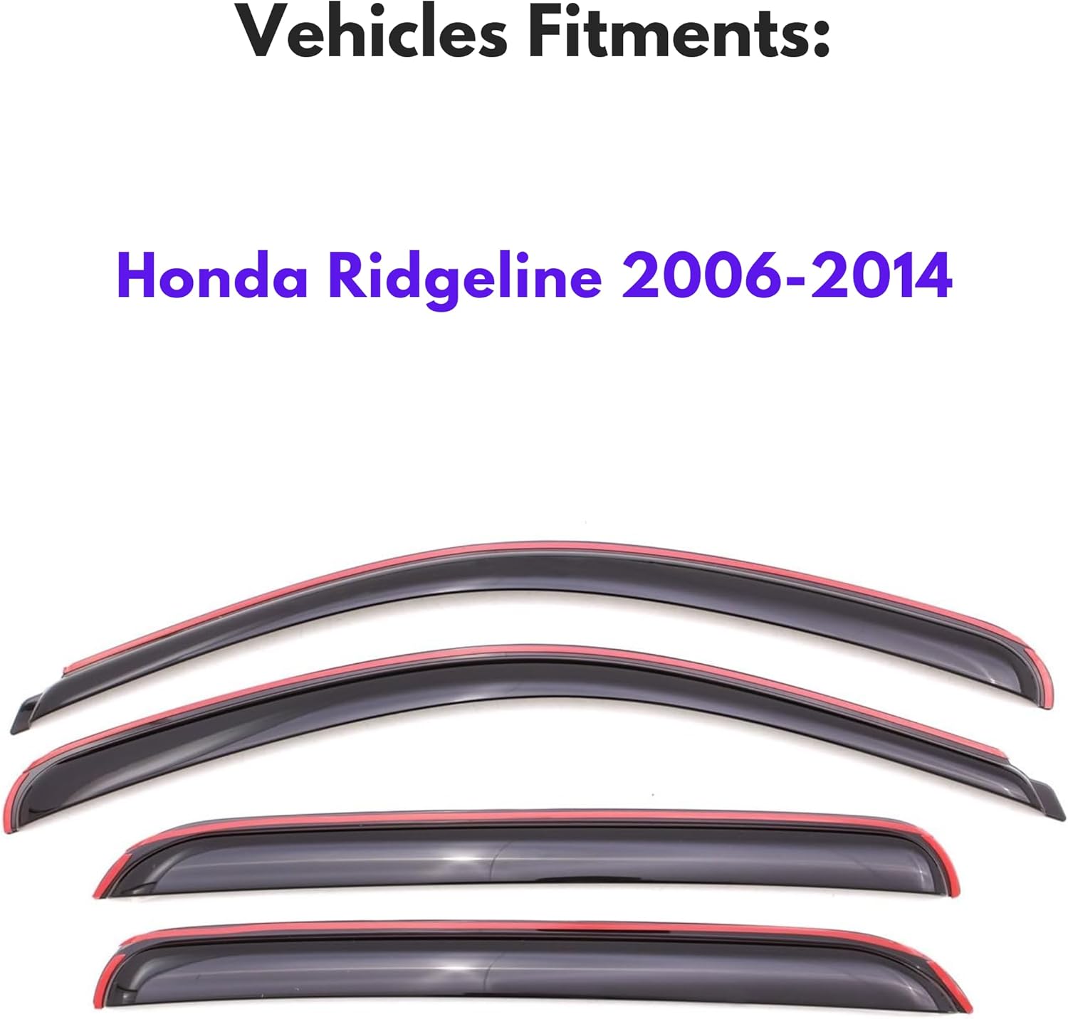 - 【Perfect Fit】KPY window visors rain guards vent deflectors compatible with Honda Ridgeline 2006 2007 2008 2009 2010 2011 2012 2013 2014 (In-Channel)