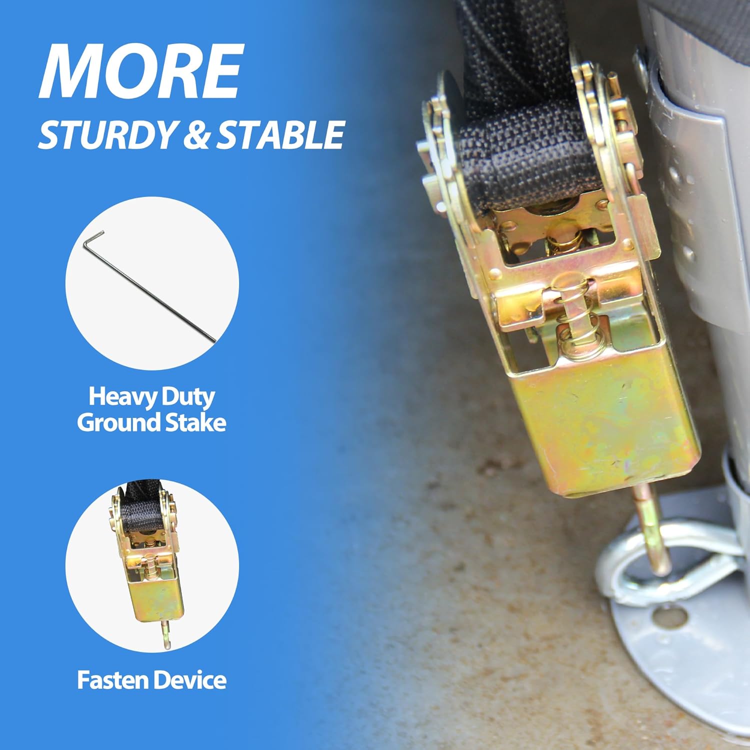 - âť—For long term use and safety, please make sure to use rope, ground anchors for stability.If you want to place it on the grass for a long time, you need to pour cement around the legs and fix it with expansion screws to ensure stability. (Expansion screws need to be purchased by yourself. )