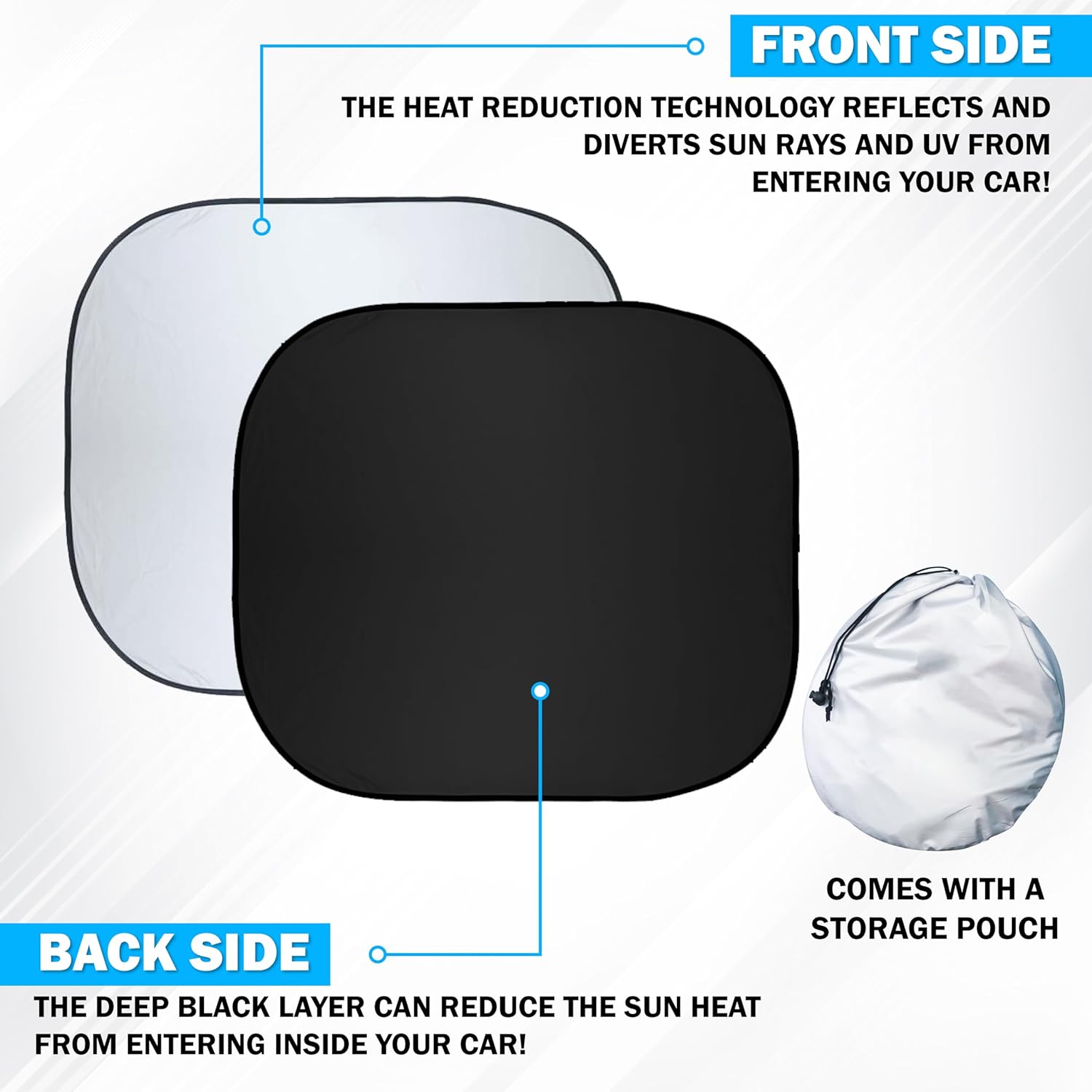 - Foldable & Compact for Easy Storage: Our foldable sun shade for car windshield is lightweight, portable, and easy to store. The collapsible windshield sun shade folds down quickly, keeping your car clutter-free while ensuring quick positioning when needed.