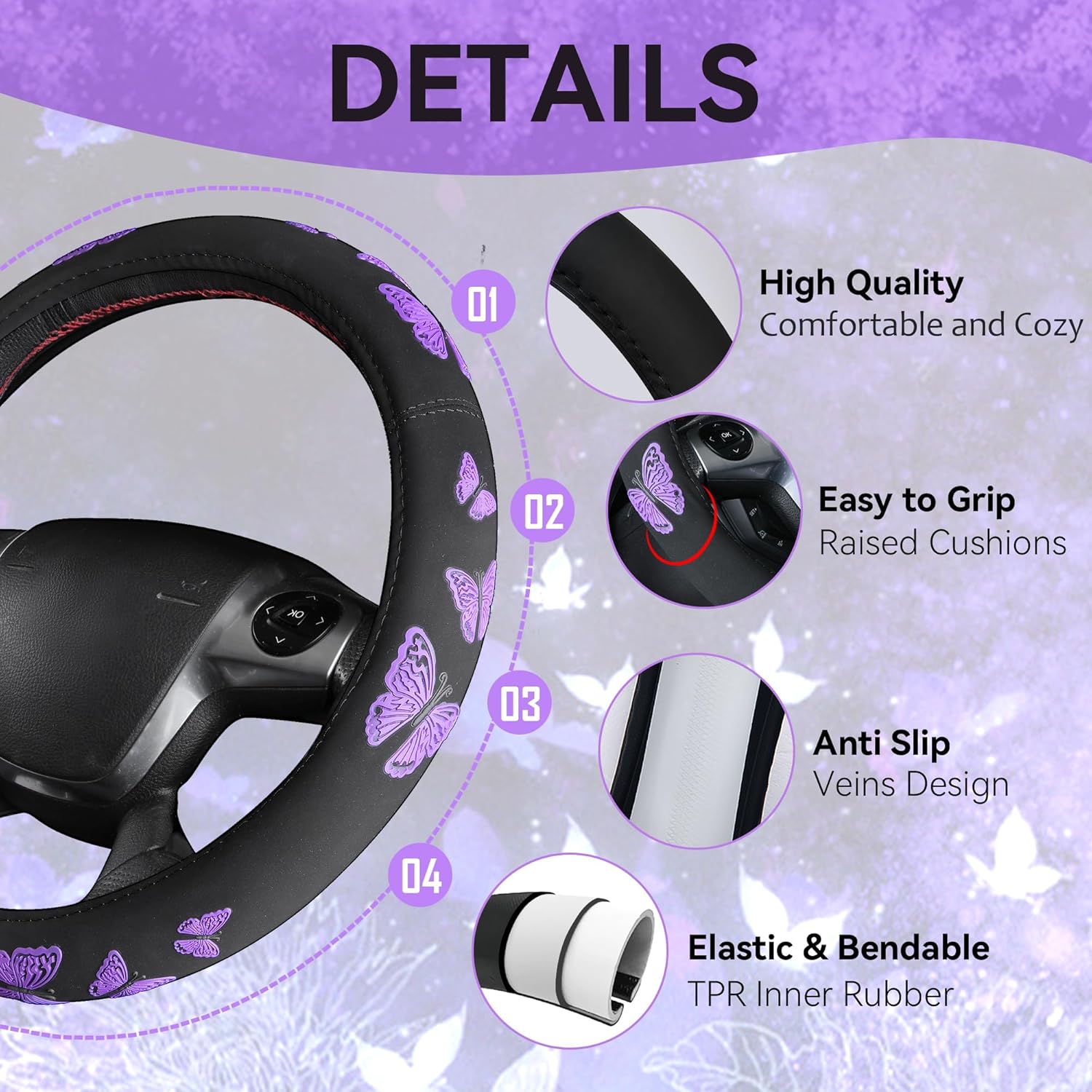 - ăQuality and Durable MaterialsăOur butterfly Car Interior Accessories made of high quality materials to ensure long-lasting performance. Protect your car interior from stains, spills and daily wear and tear.