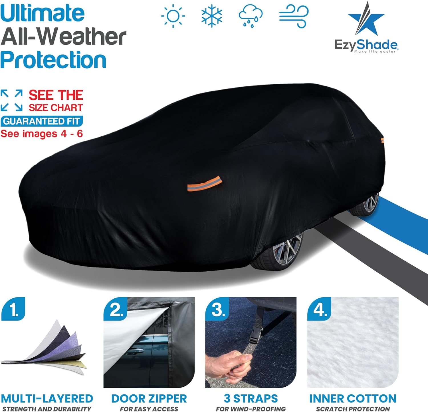 EzyShade 10-Layer Waterproof Sports Car Cover. See Vehicle Size-Chart for Accurate Fit. All Weather Full Outdoor Covers. Porsche Z4 370Z BRZ 86 TT Sun Snow Wind Rain. Black, Size C2 (See SizeChart)