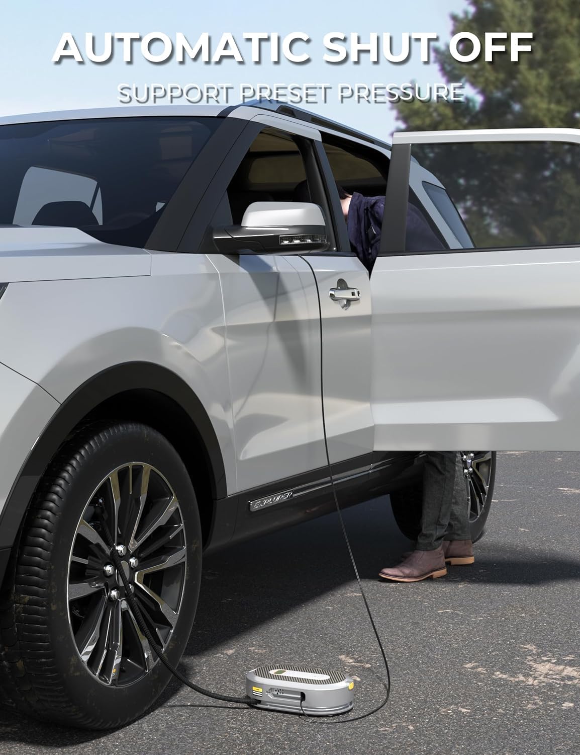 - Compact Size: Fits in your trunk or glove compartment, making it ideal for pumping tires on the go. Simply switch between PSI, kPa, BAR, and KG/c㎡ pressure units to suit your preference.
