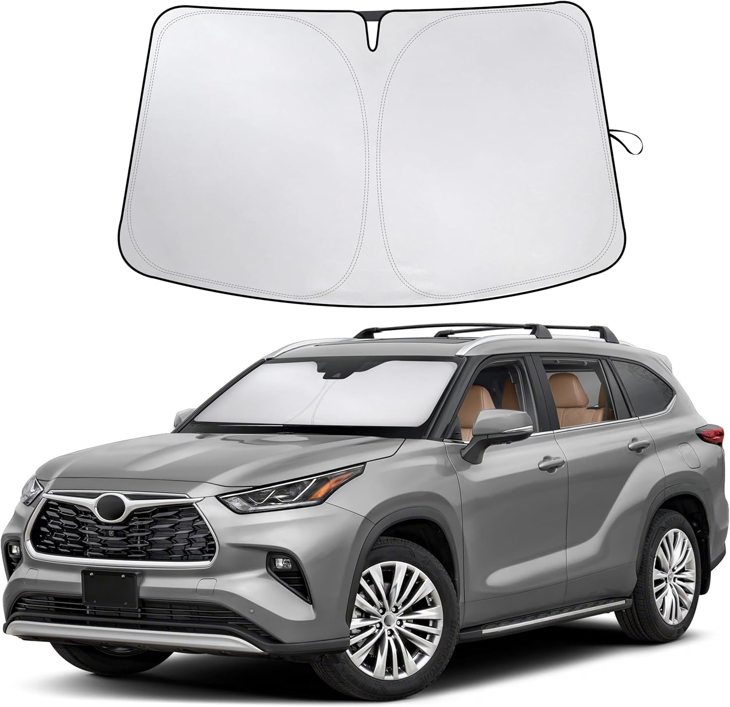 - Precision Fit for Toyota Highlander (2016–2025) – Custom-designed front windshield sun shade for all Toyota Highlander models, including L, LE, XLE, Limited, Platinum, Hybrid LE, XLE, Limited, and Platinum. This reflective windshield cover is tailor-cut for a glove-like fit, offering full coverage without gaps. It's an ideal SUV sunshade accessory for protection from intense heat, UV rays, and glare during summer or year-round use.