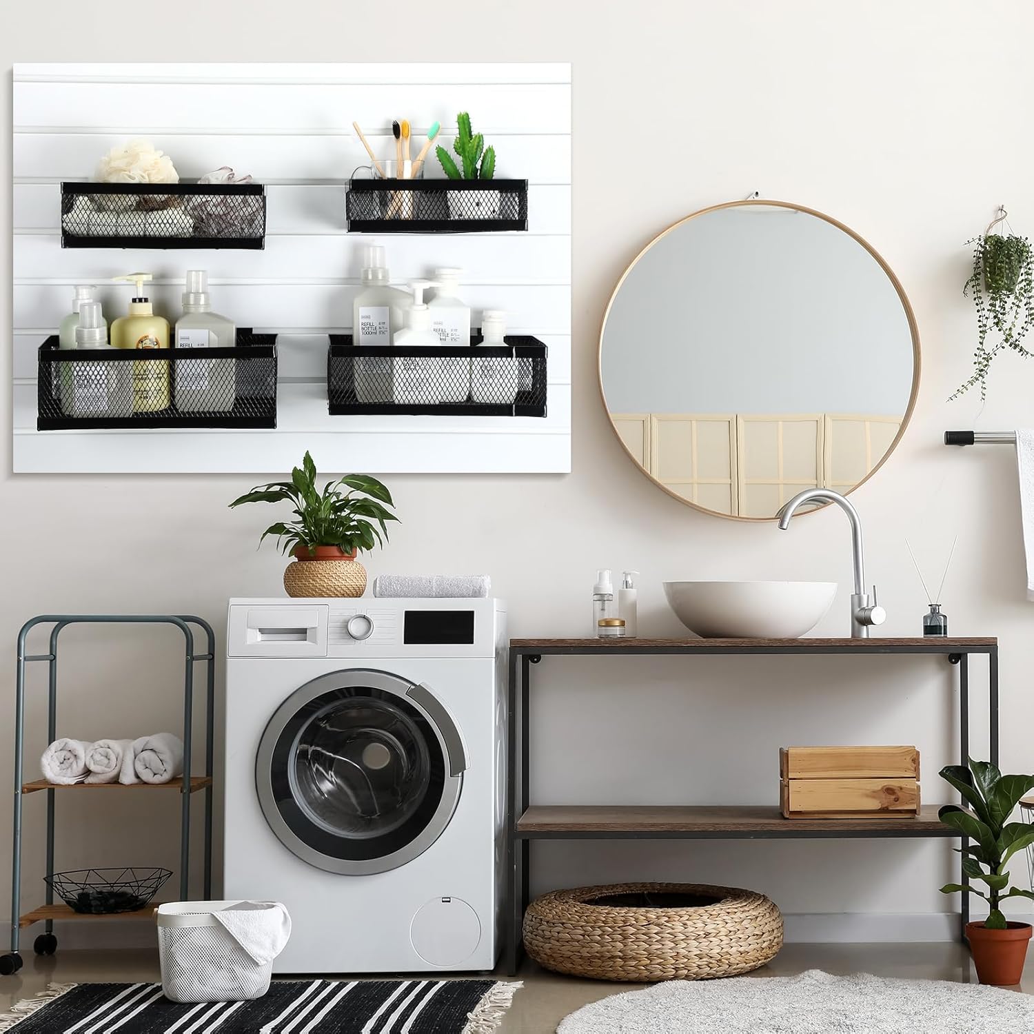 - Nice Organization Tool: designed for organization, these slatwall panel baskets in 4 sizes provide different solutions for various items storage; They are easy to install, can hold a decent weight, and consequently, they offer an efficient organization system; The baskets' durable and sturdy construction, coupled with their artistic craftsmanship, ensures that they do not deform easily, fit for home, office, shops, and stores alike