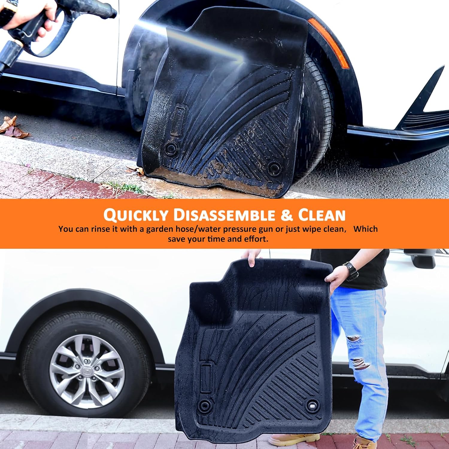 - All-weather Protection: Binmotor floor mats are designed with a high outsidewalls that help contain rain, snow, muddy fallen leaves, food debris, liquids or debris, giving your car perfect protection in all weather and keeping your car clean. Binmotor vehicles floorliners are designed to stand up to the most extreme weather conditions. Multiple tests prove that it won't crack, curl or break down.