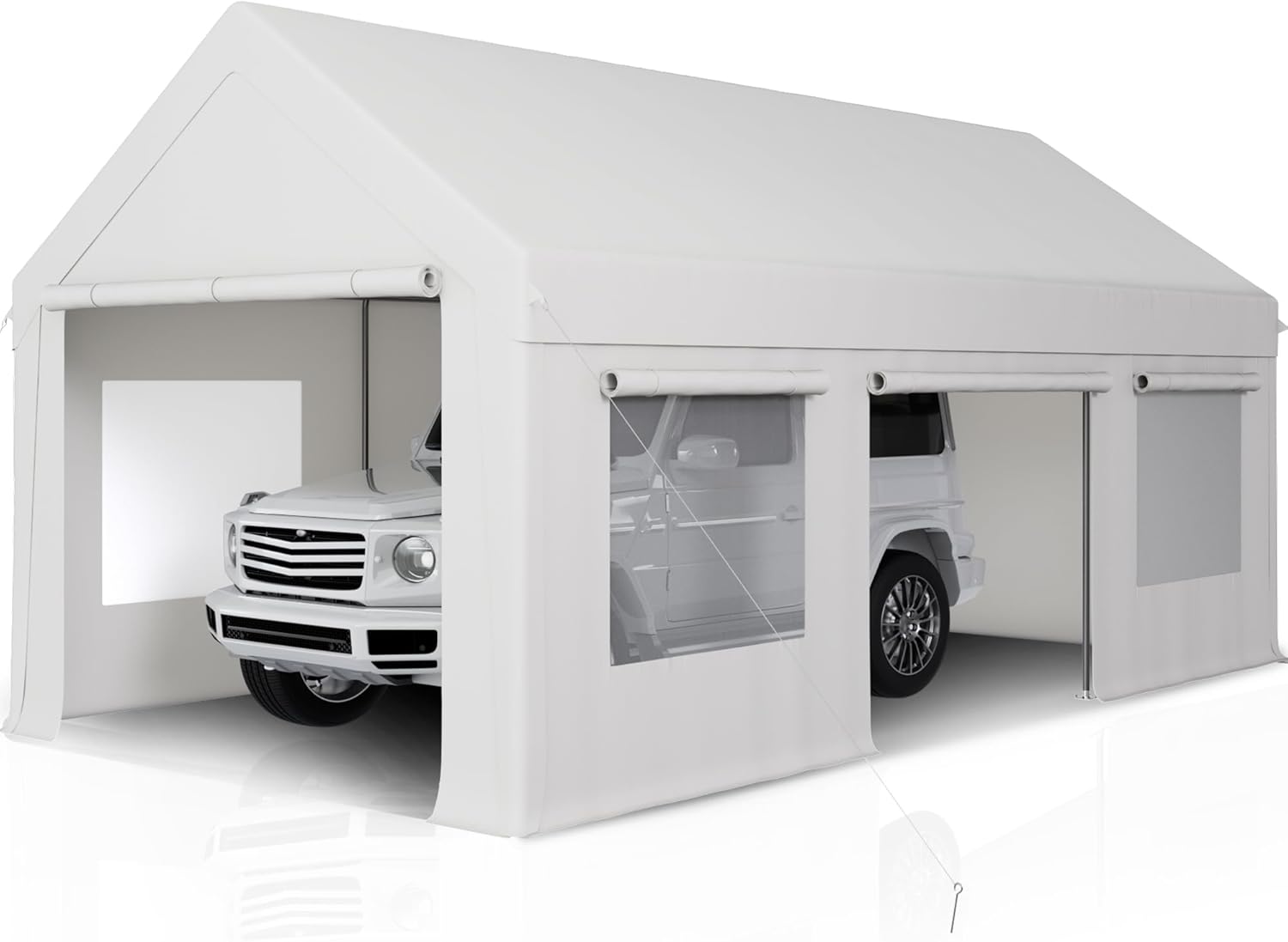 - 【Roll-Up Windows & Side-Opening Door】Compared to other carports, there are a total of four windows on both sides to maintain excellent ventilation. Unique side-opening door not only facilitates ventilation but also easy access.