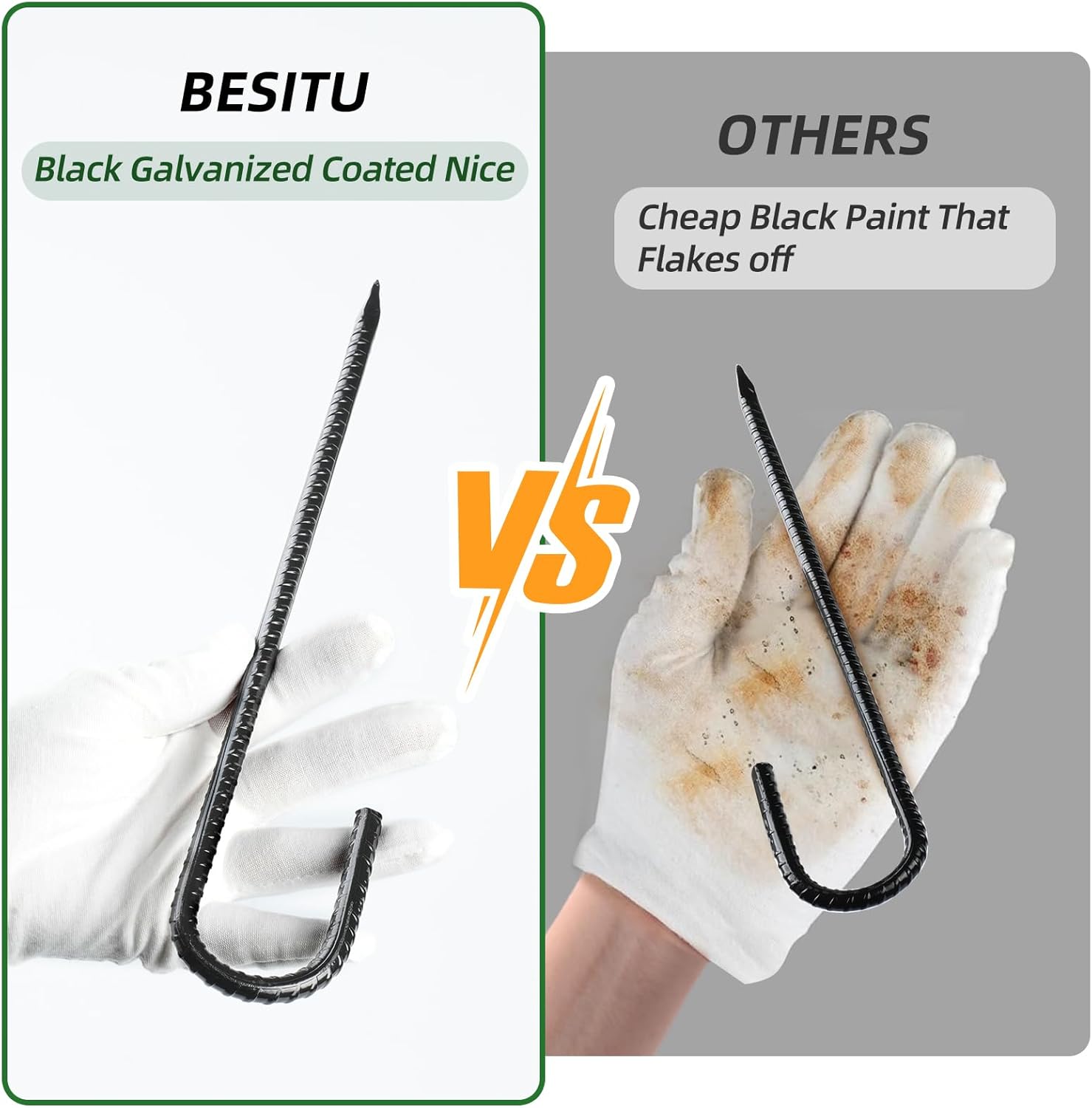 - 【TWO YEAR WARRANTY】32-pack j hook rebar stakes. Order Besitu metal stakes today, you would love it! If not, please feel free to contact us, we would provide the best solution within 12 hours.