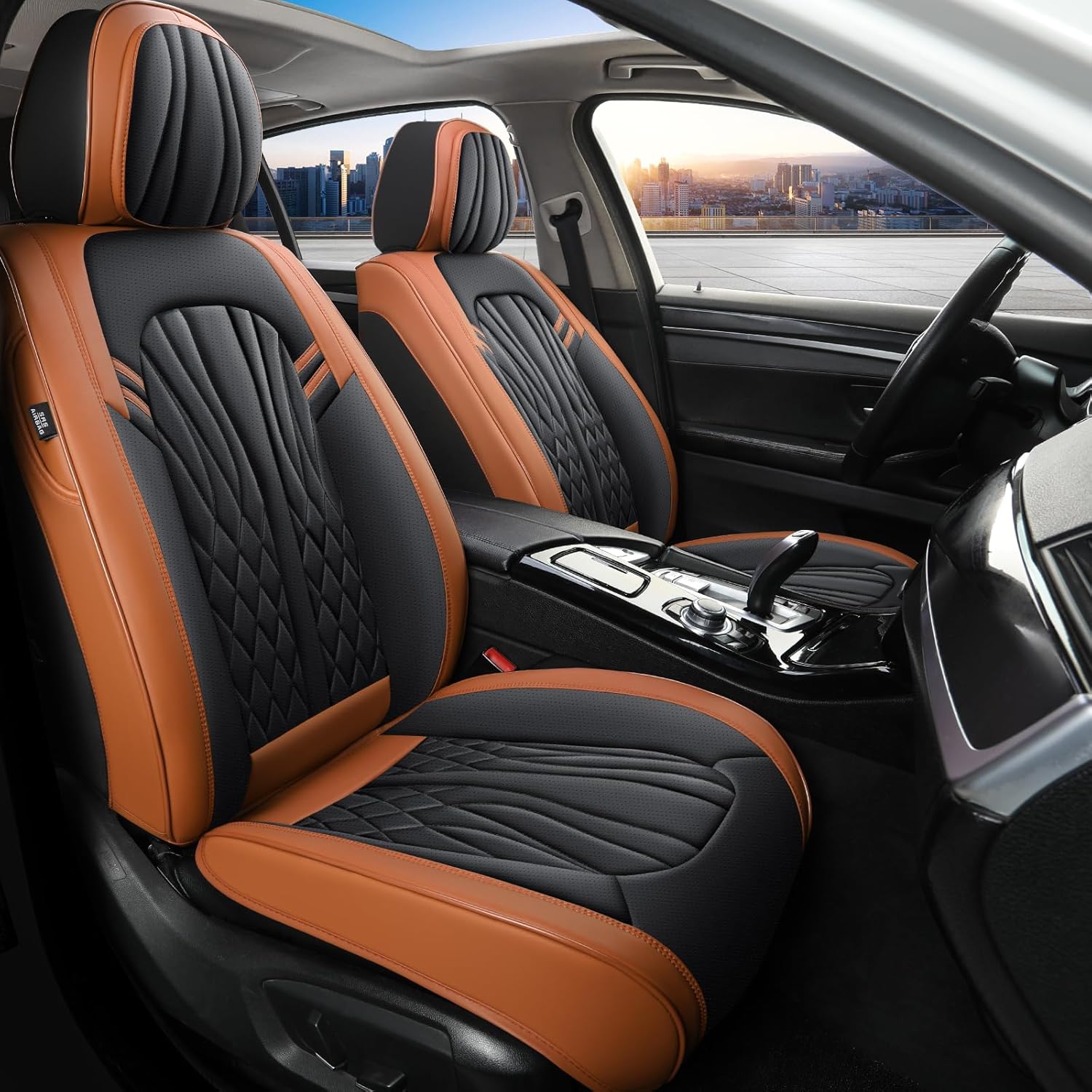 Car Seat Covers Front Seats, Car Seat Protector Waterproof, Car Seat Cushion Nappa Leather, Driver Seat Cover Brown Carseat Cover Universal Fit for Most Cars Brown&Black