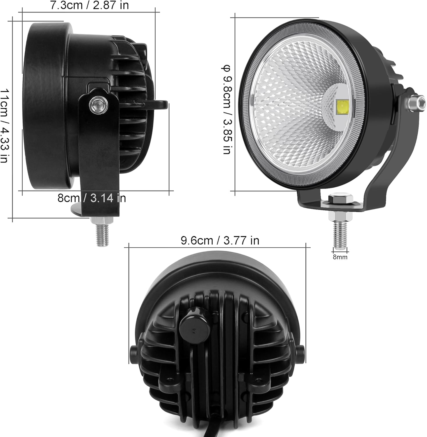 - ăSUPER BRIGHTNESSă Compare with the same size another work light,this kind light have the most biggest real wattage,advanced High Power Led Chip give out bright and White ray for clear visibility. special designed lamp cup leads to wider illumination range, allowing you to see the left and right side clearly.